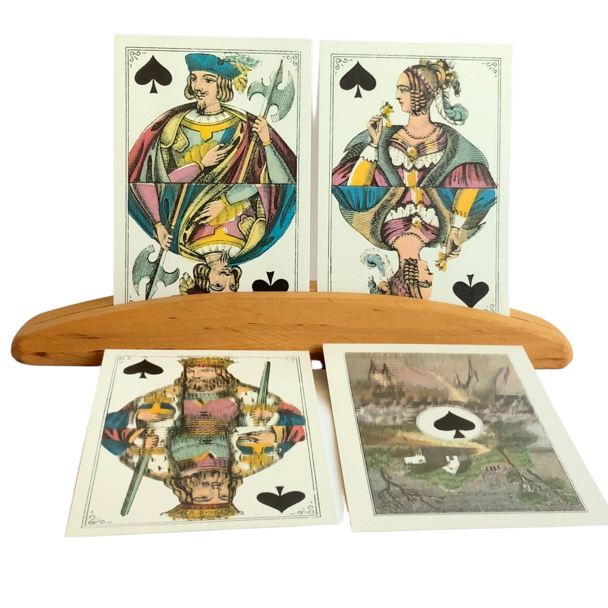 Very Rare Limited Edition, No. B416. The cards are in excellent condition. Reproduction of a 130 year old deck titled BONGOÛT. Includes booklet with the history of the playing card, in English, Dutch and French. 91 pages.