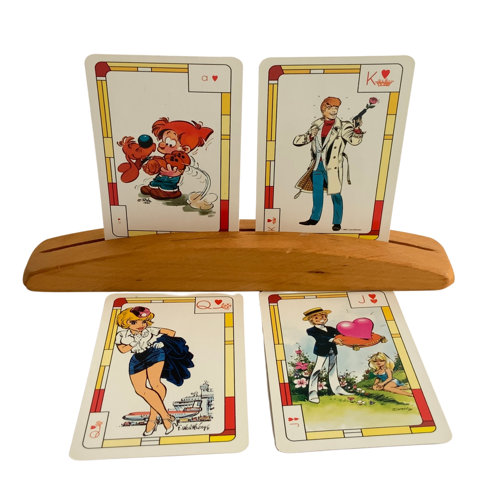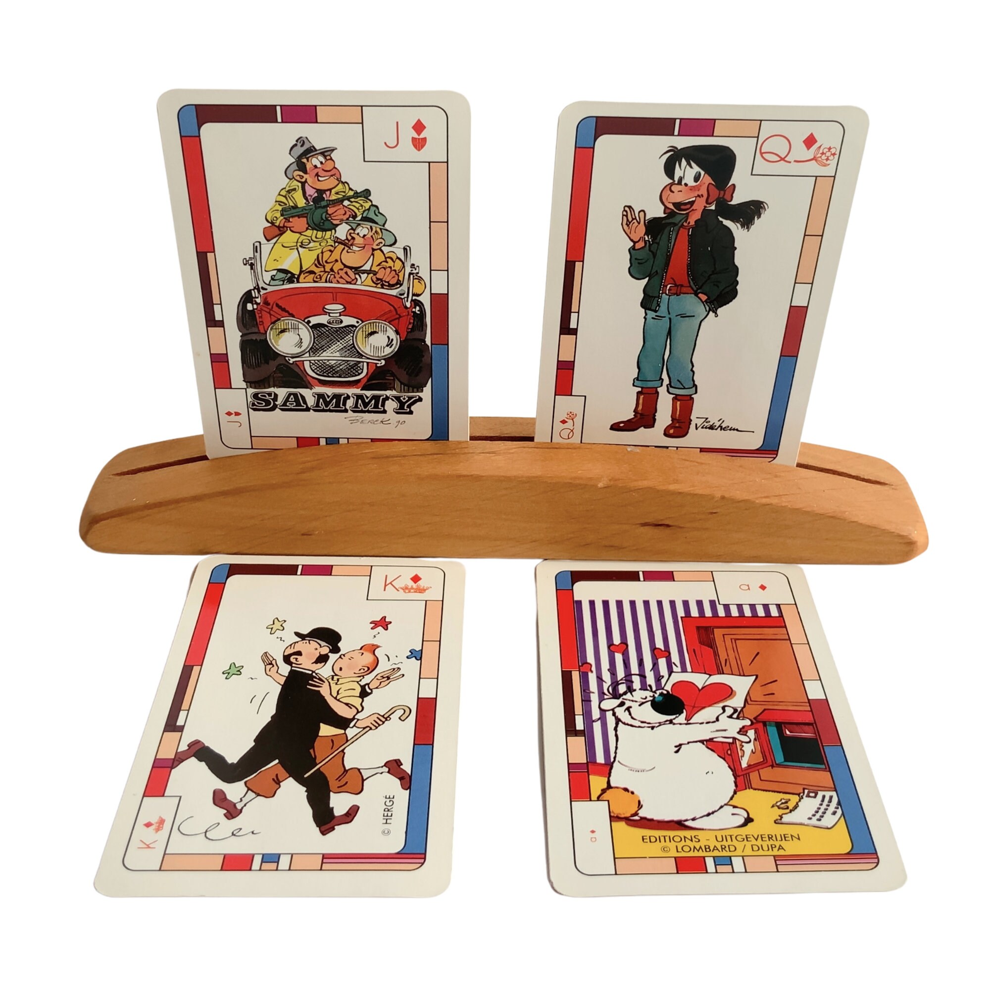 On the court cards and jokers we see Bommel, the Smurfs, Robbedoes, Tin Tin, Lucky Luck and other comic characters.