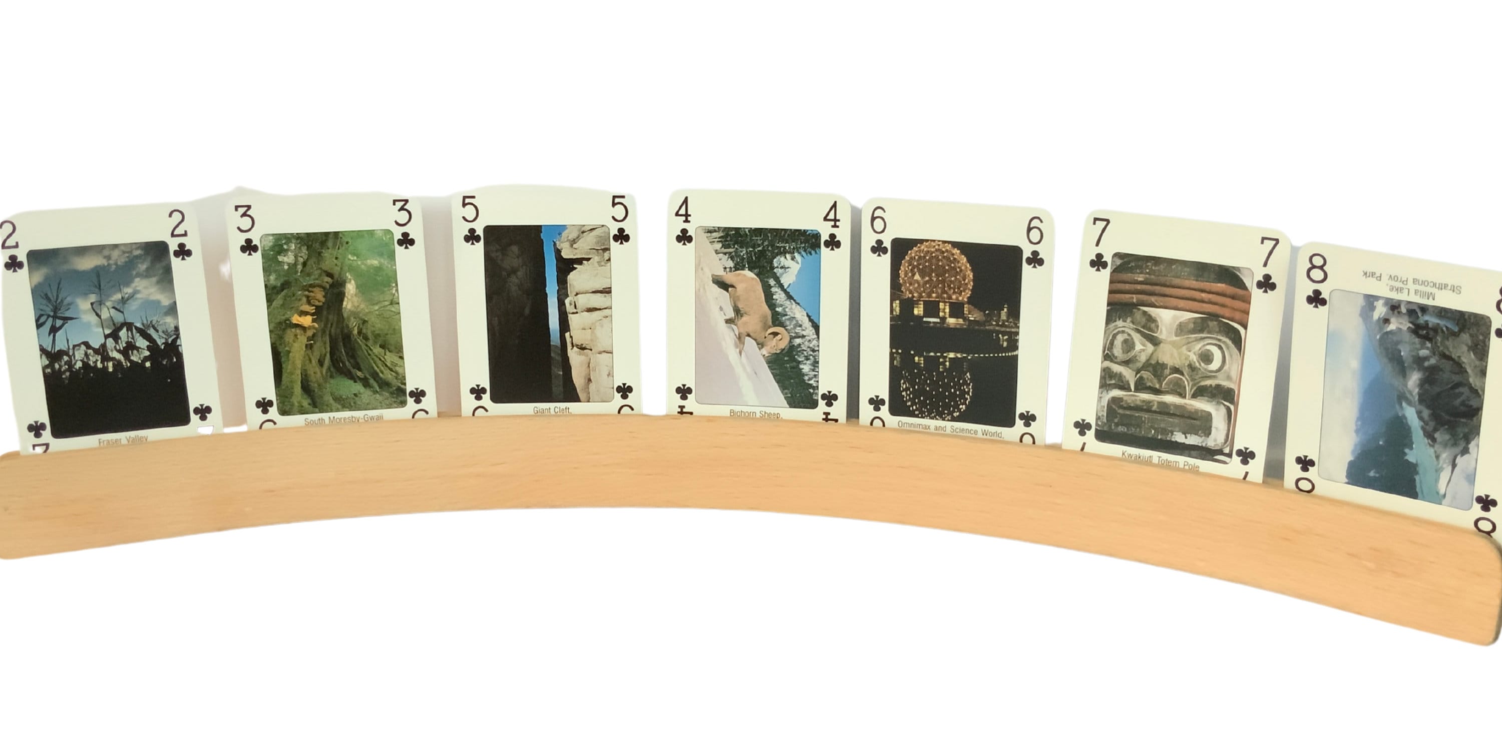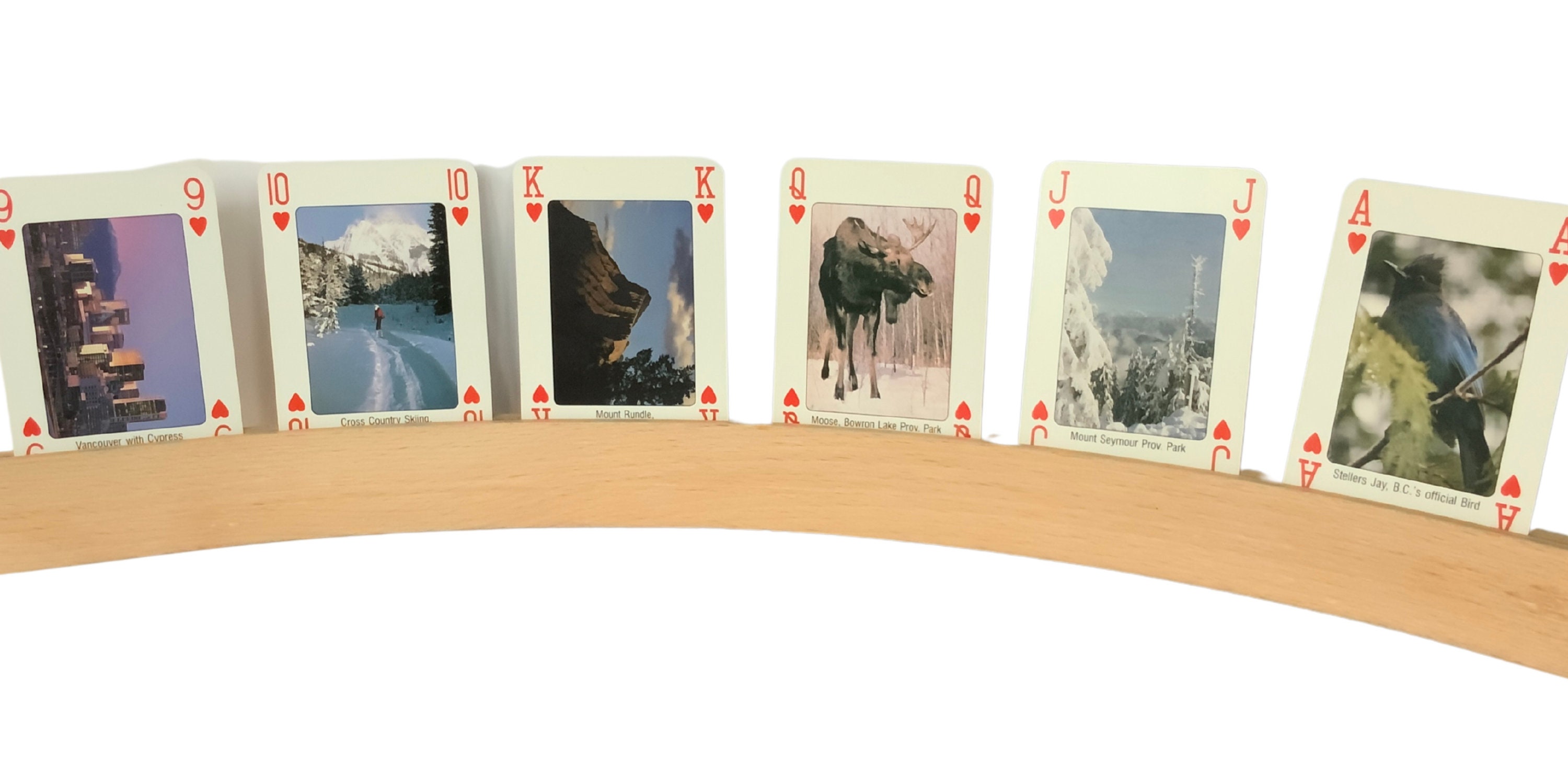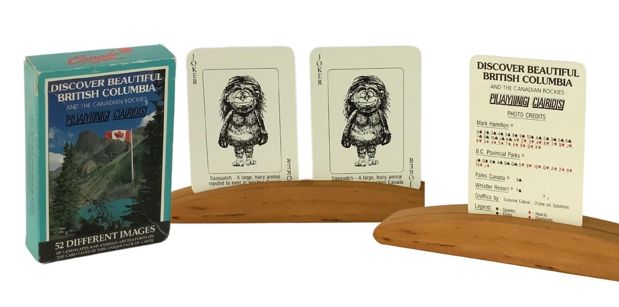 TITLE: 'discover beautifull British Colombia and the Canadian Rockies' , 52 different images of landscapes and Animals. A unique card game, Made by Carta Mundi Turnhout Belgium, photos by: SEA TO SKY PHOTOGRAPHY canada, on the jokers we see the Sasquatch that seems to exist in western Canada.