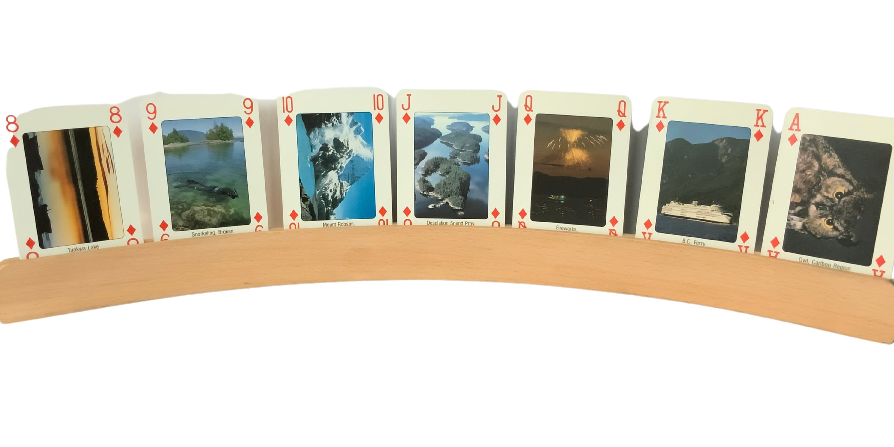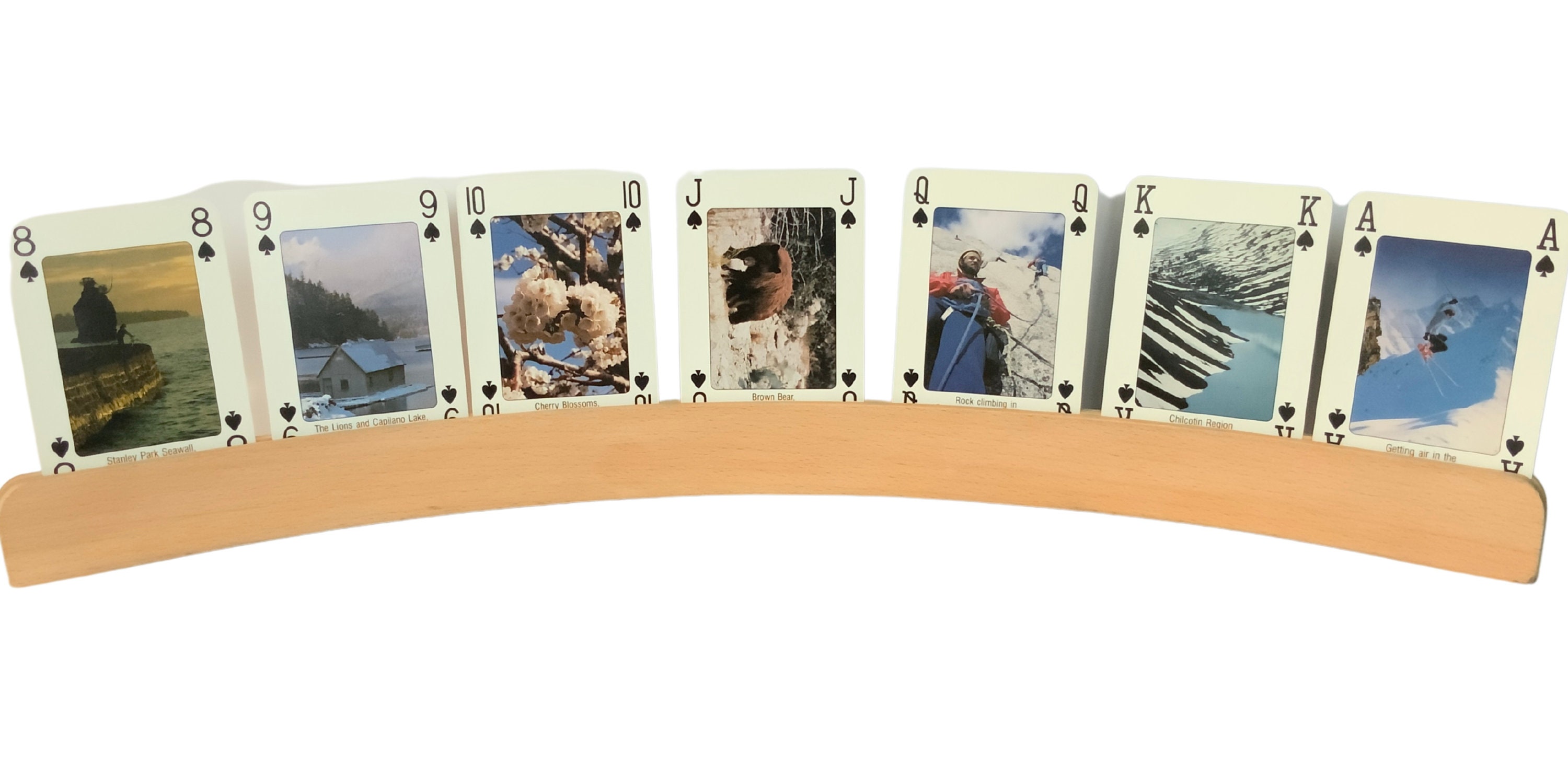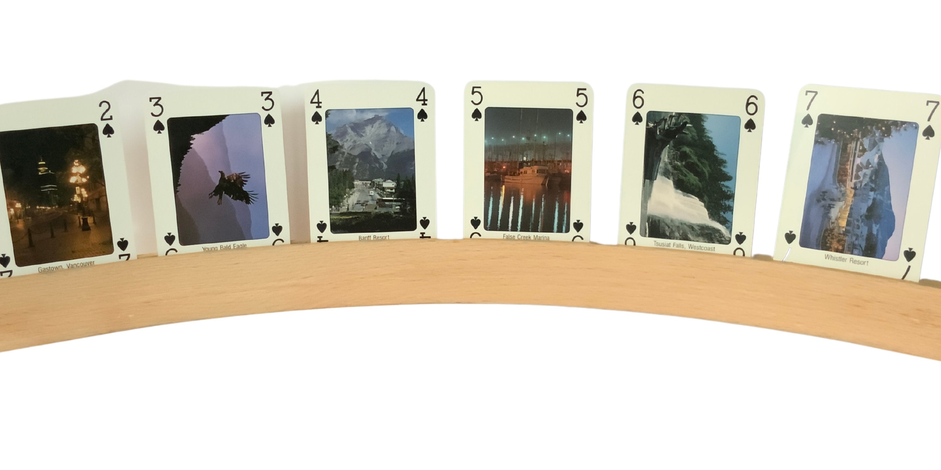 TITLE: 'discover beautifull British Colombia and the Canadian Rockies' , 52 different images of landscapes and Animals. A unique card game, Made by Carta Mundi Turnhout Belgium, photos by: SEA TO SKY PHOTOGRAPHY canada, on the jokers we see the Sasquatch that seems to exist in western Canada.