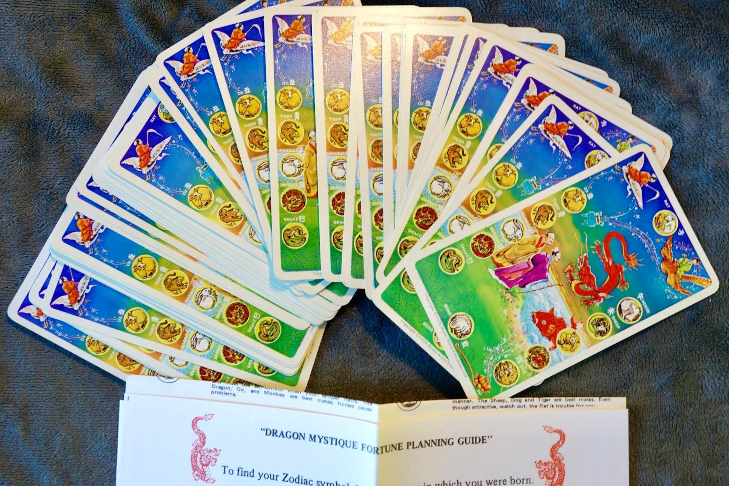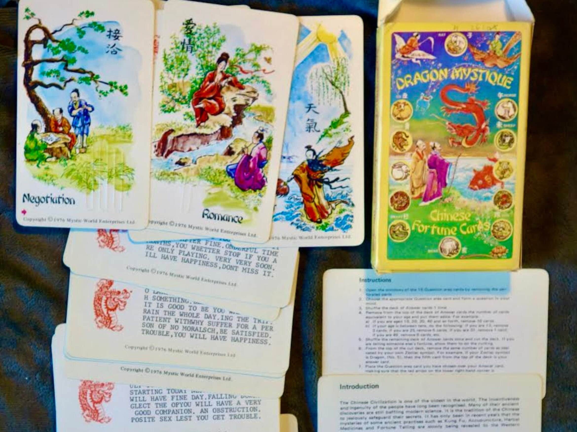 Chinese Fortune Cards, called "Dragon Mystique" cards, published and created in 1976, Mystic World Enterprises Ltd.