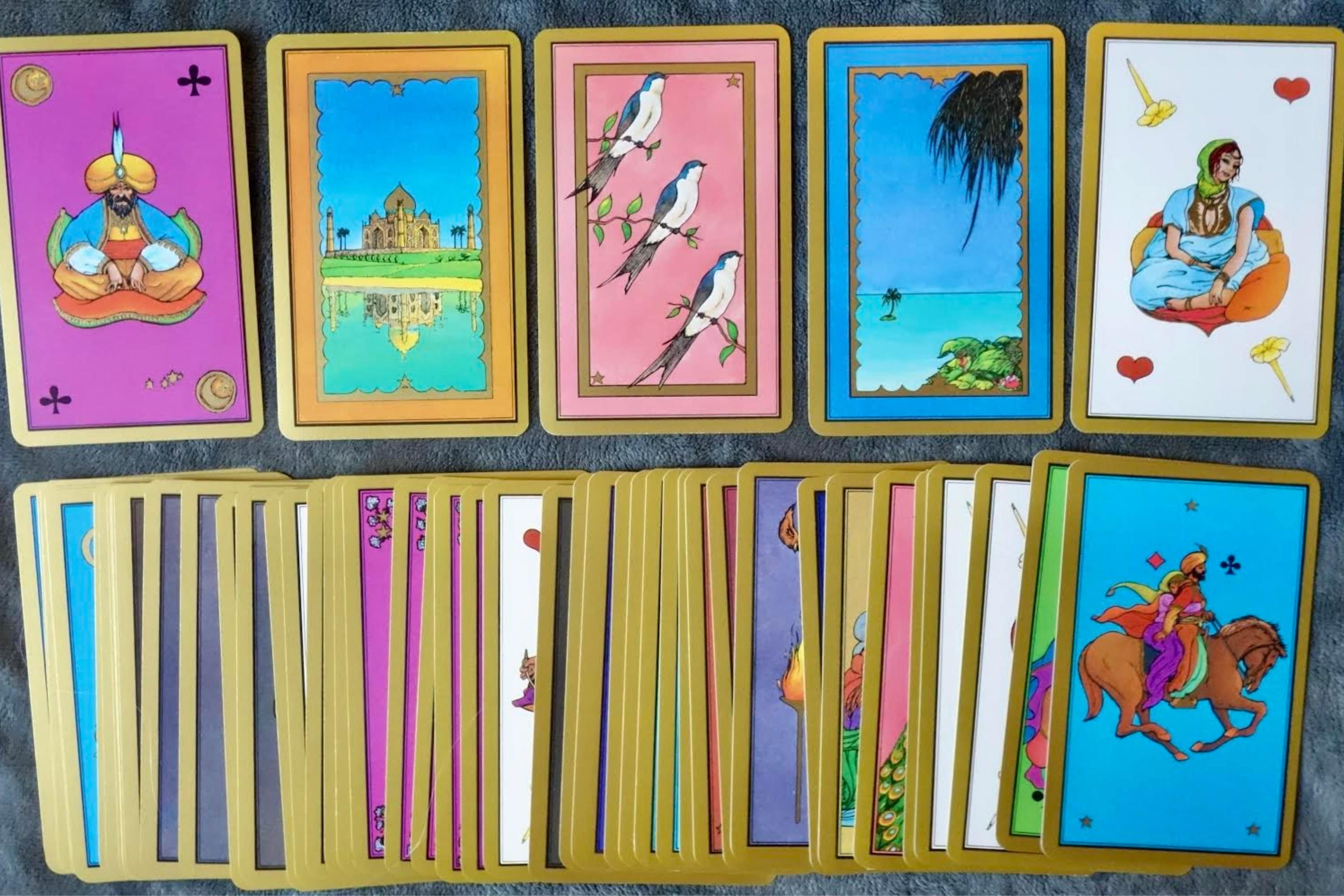 Colorful deck, Tarot Persan de- madame- Indira, this Persian Tarot was created by madame Indira in 1980.