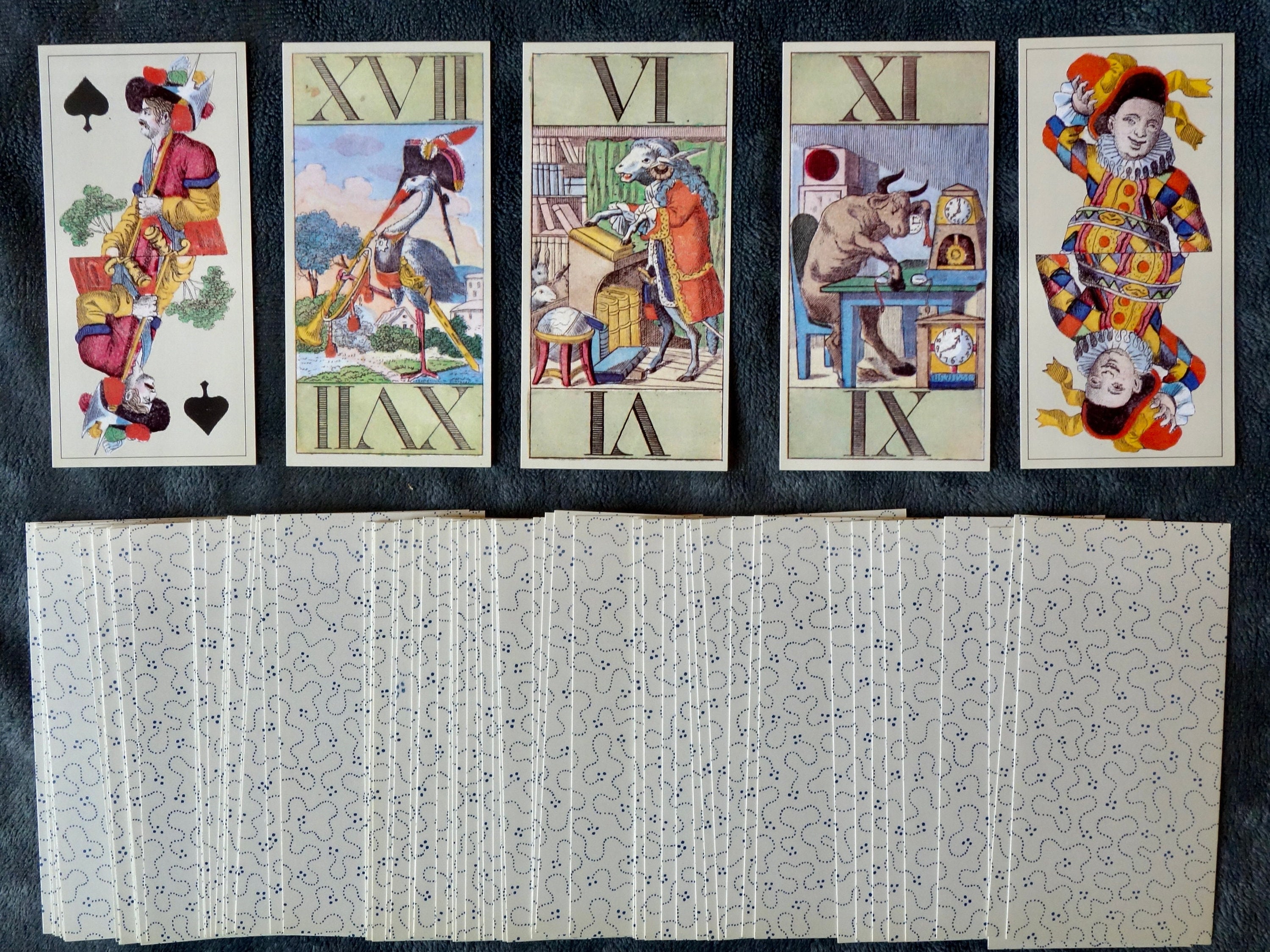 Beautiful facsimile tarot cards issued in a limited edition of 2000 decks for Edition Leipzig, Muller of Berlin. it is a facsimile of a set of cards made by Müller of Berlin in 1815.