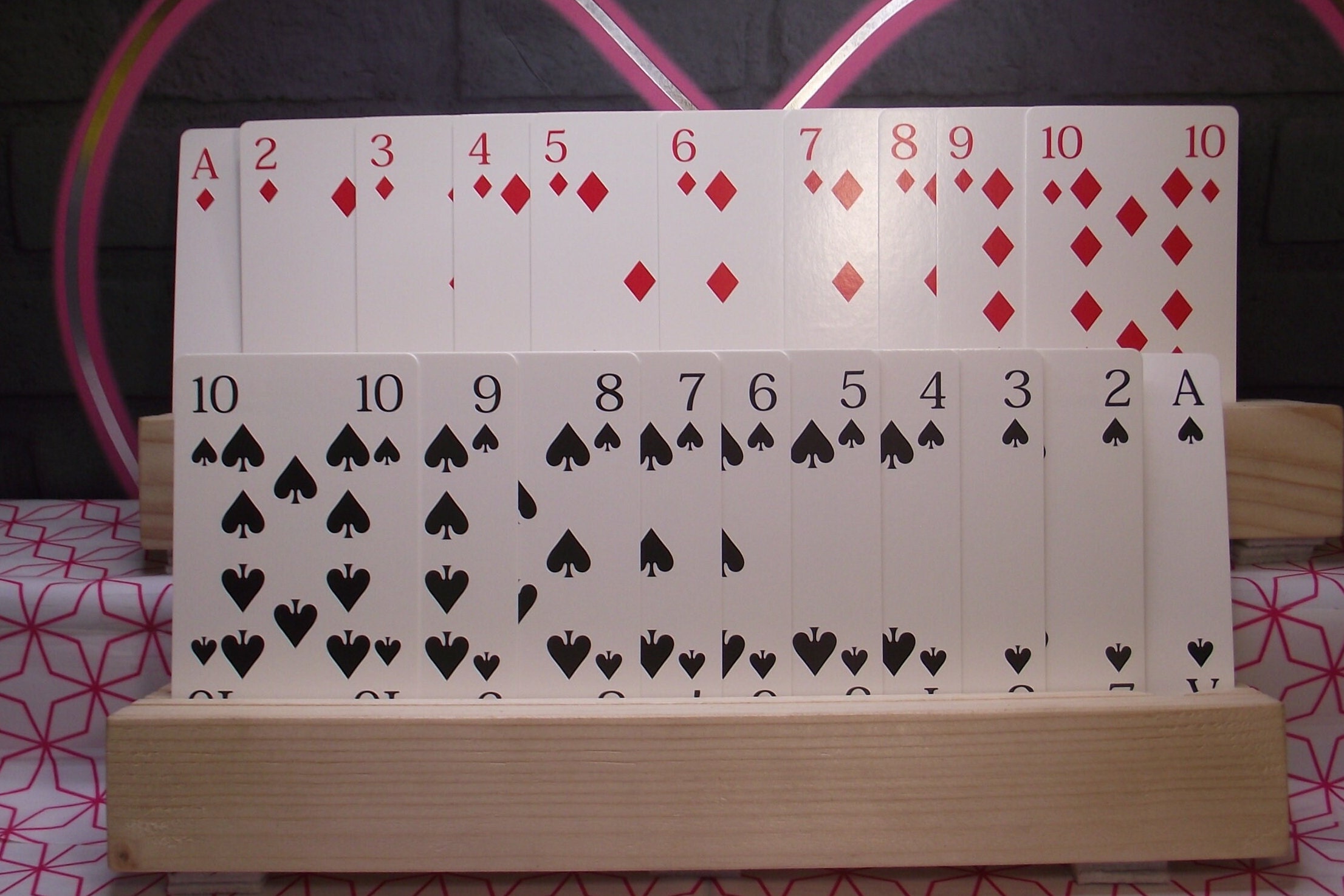 -D- deck zal in goede staat zijn. er kunnen een paar gekreukte kaarten zijn het aantal gekreukte kaarten wordt vermeld in de beschrijving en wat slijtage aan de randen.