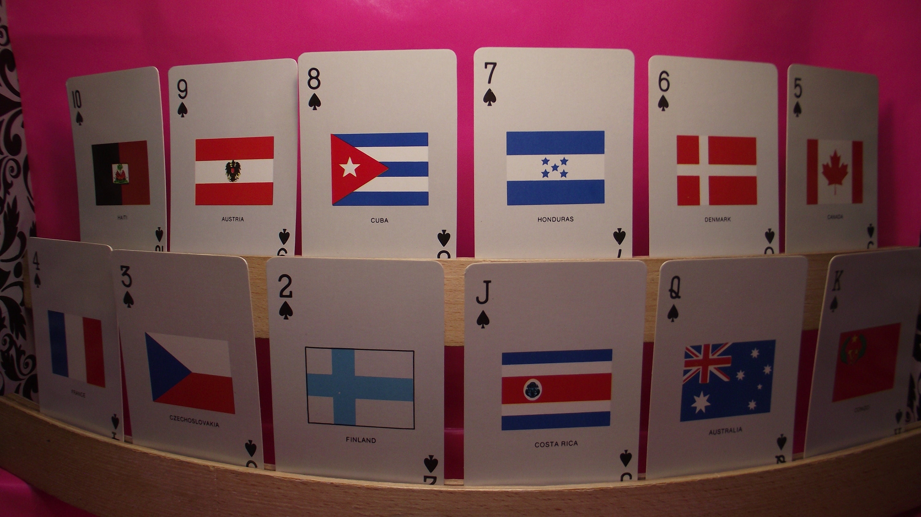 Colorful and rare deck "UNITED NATIONS FLAG" playing cards. Each card shows a flag of different countries - complete deck with 1 joker and a text card.