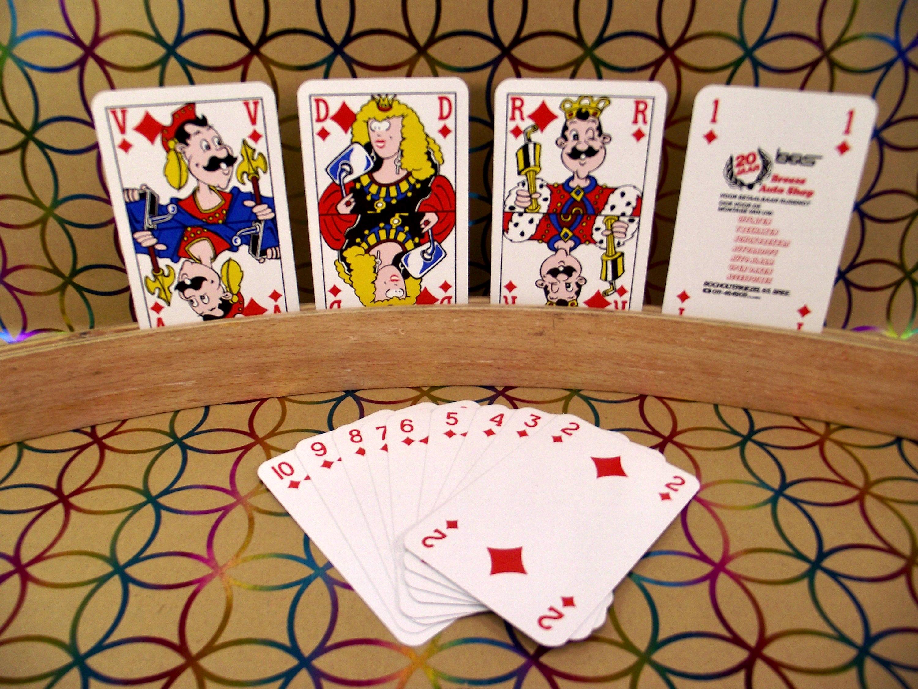 -D- deck zal in goede staat zijn. er kunnen een paar gekreukte kaarten zijn het aantal gekreukte kaarten wordt vermeld in de beschrijving en wat slijtage aan de randen.