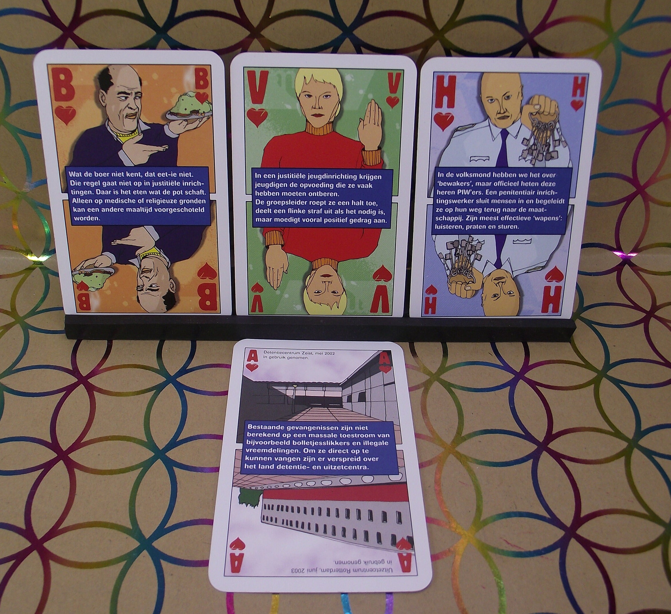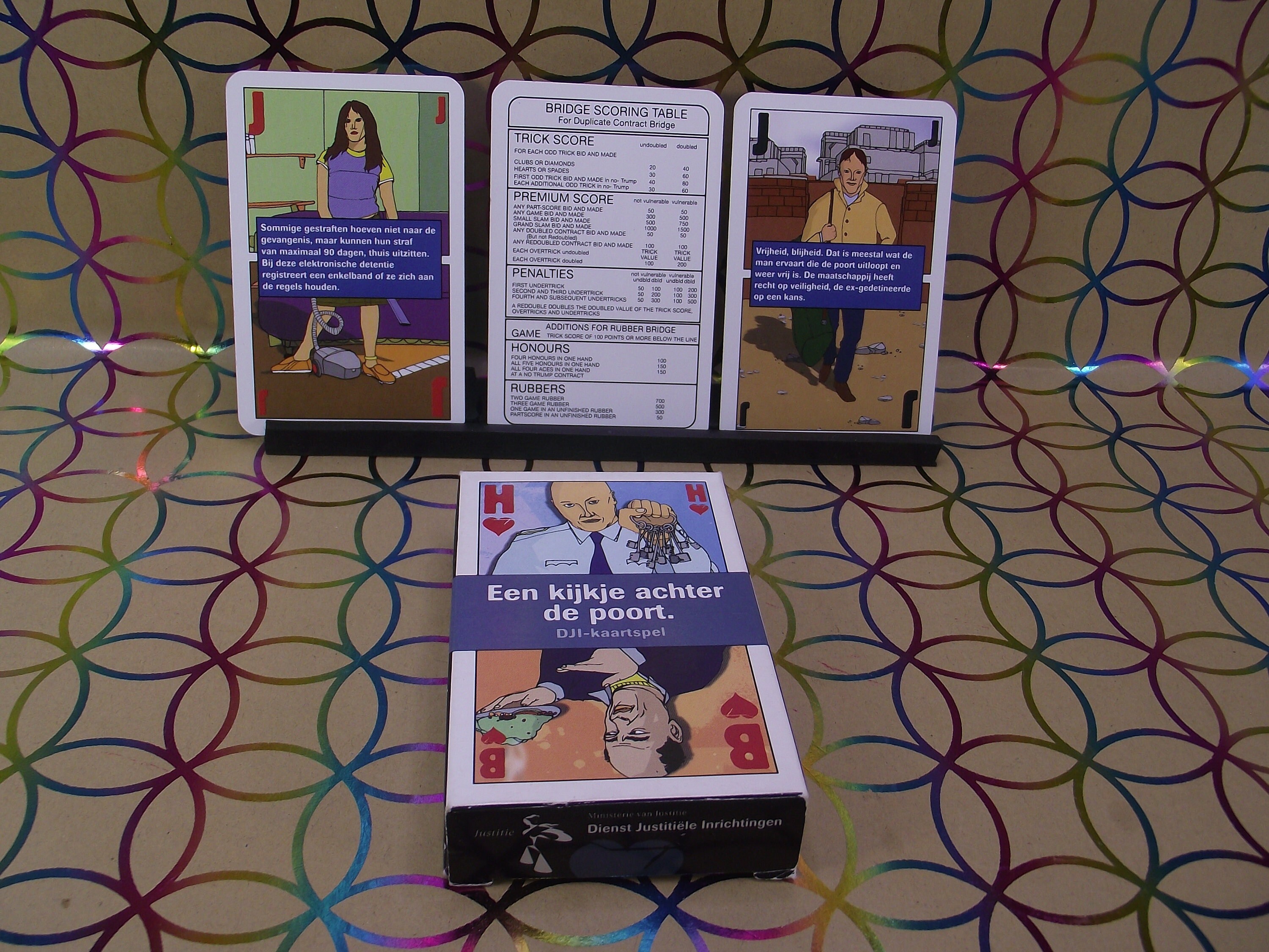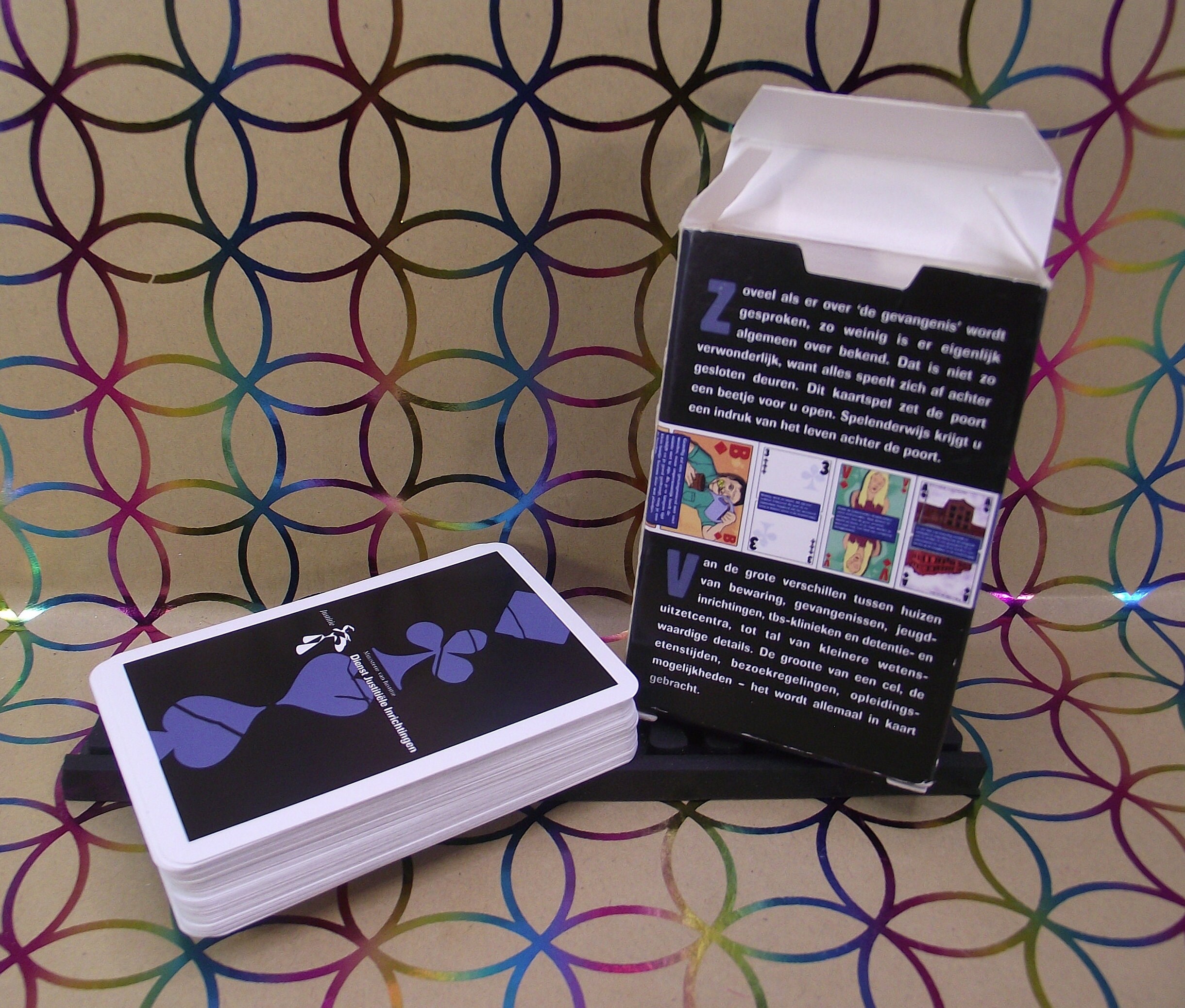 A non-standard card game "a look behind the gates of Judicial/prison institutions in the Netherlands. Special card game, with all kinds of information about the things that one encounters in these institutions. Reintegration and youth are also discussed.