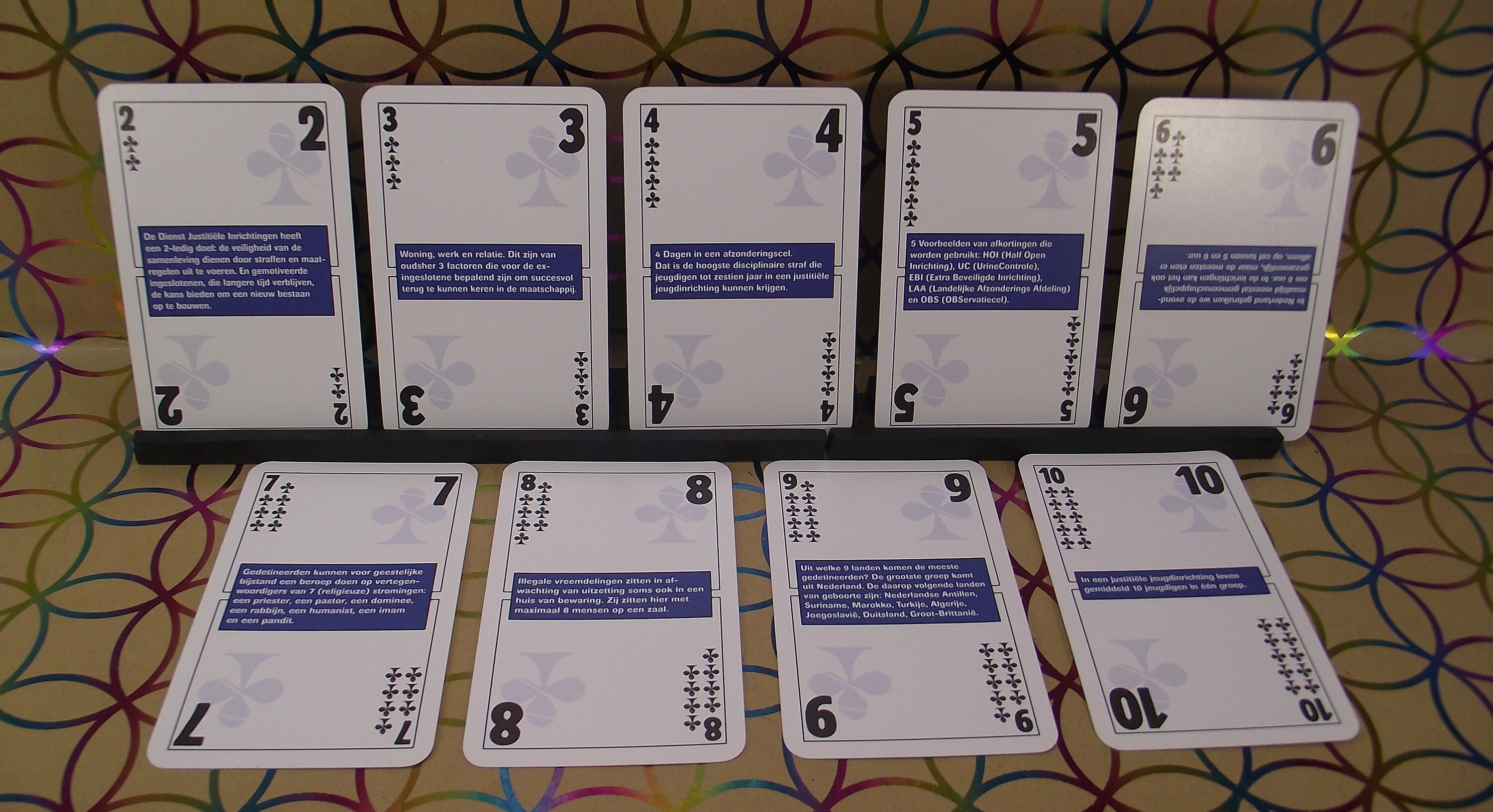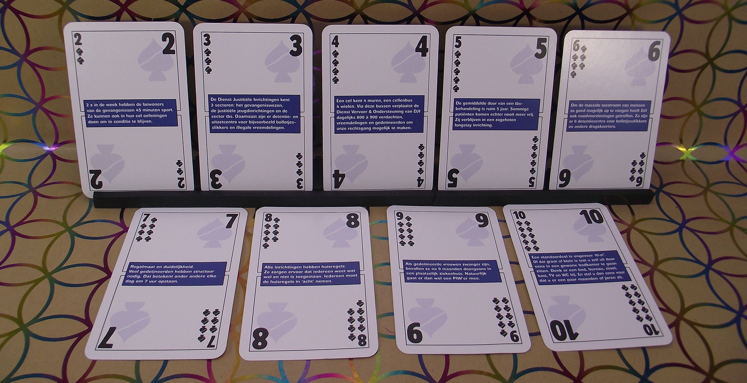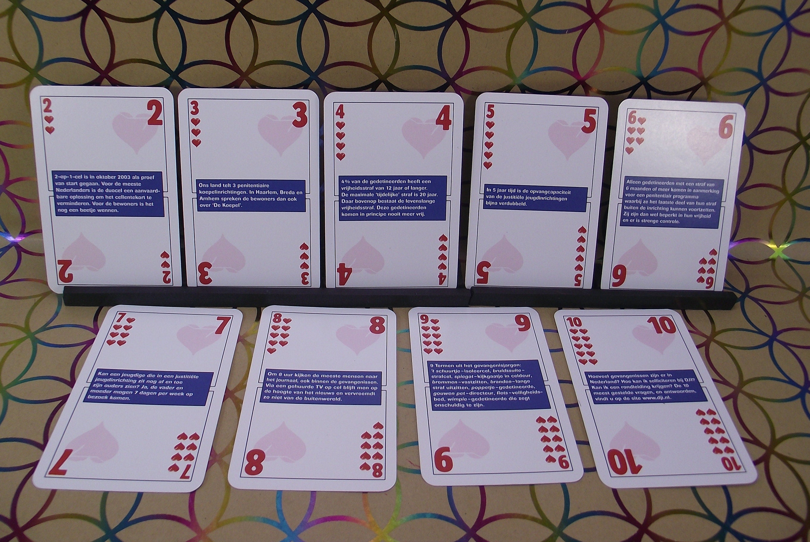 A non-standard card game "a look behind the gates of Judicial/prison institutions in the Netherlands. Special card game, with all kinds of information about the things that one encounters in these institutions. Reintegration and youth are also discussed.