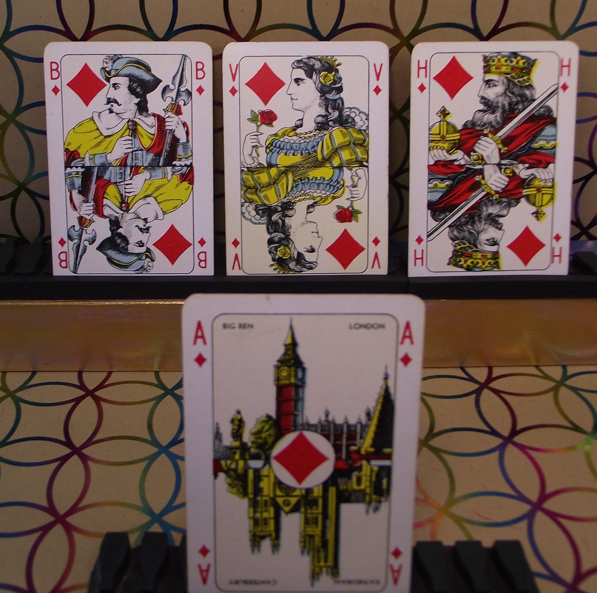 Playing Card Factory NEDERLAND makes this card game for department store HEMA. It is a beautiful and rare collector's item. It is a standard Rijnlands Pattern and was made by Playing Card Factory Netherlands until 1969. The cards are in good condition. The first photo shows that some cards are slightly discolored.