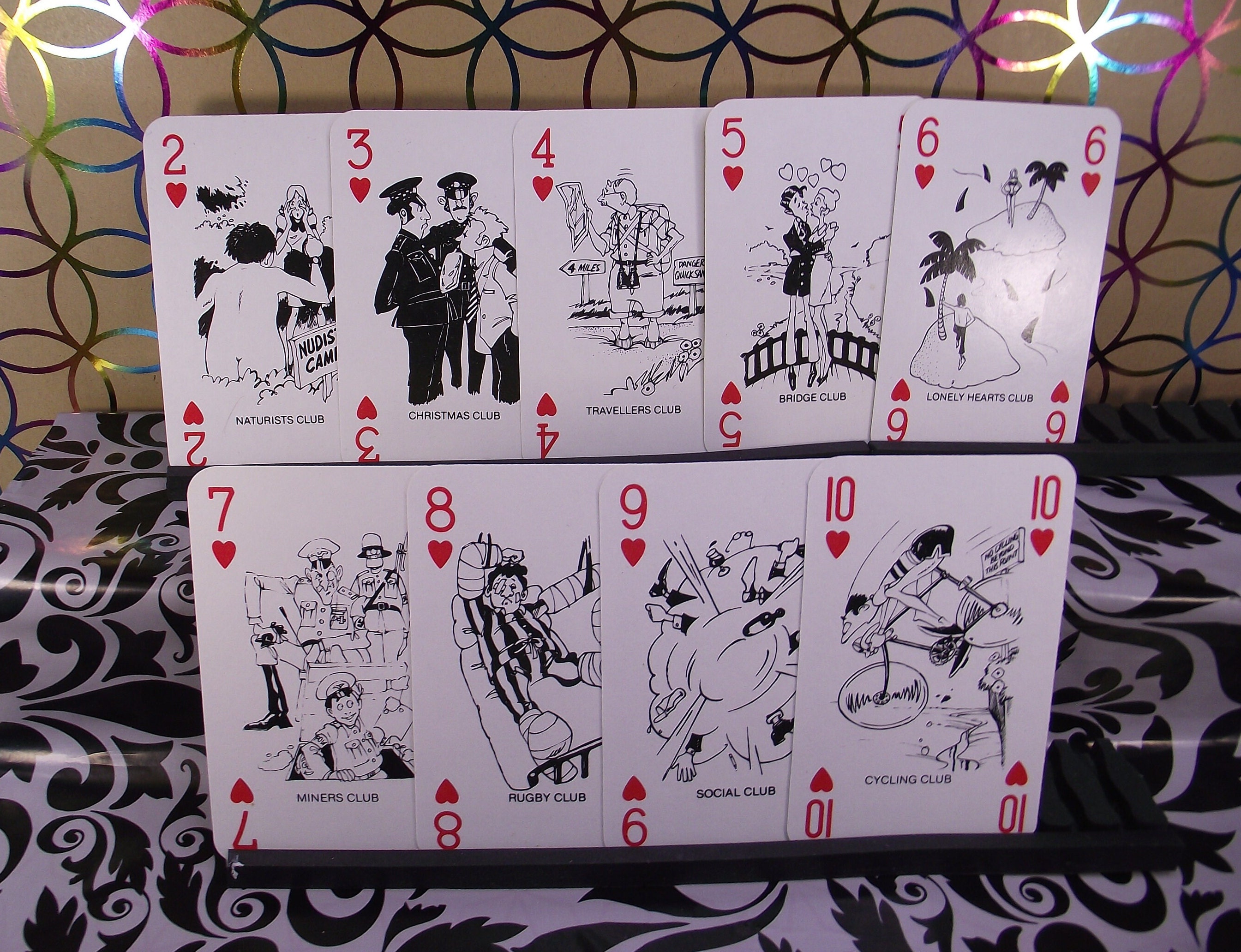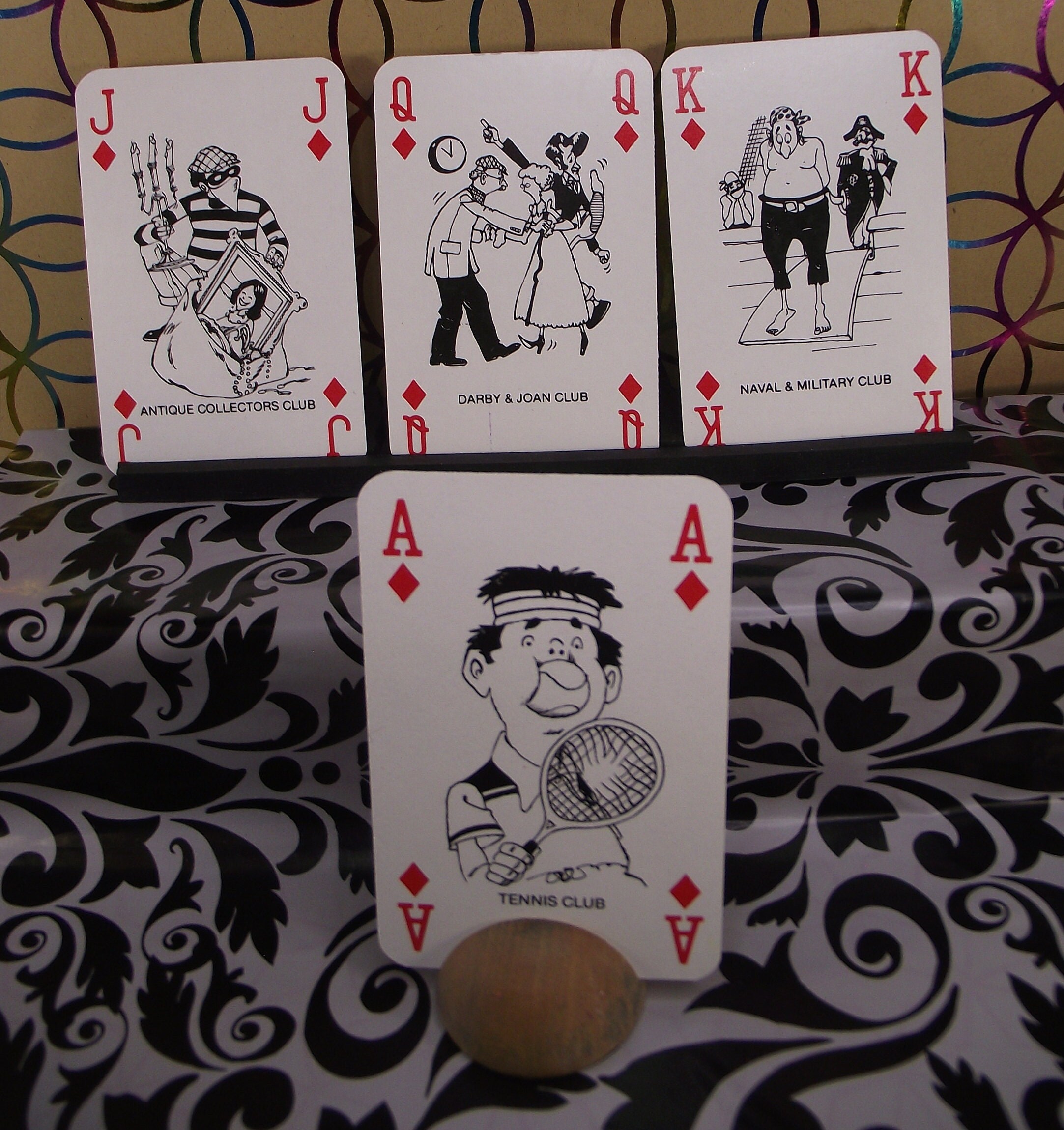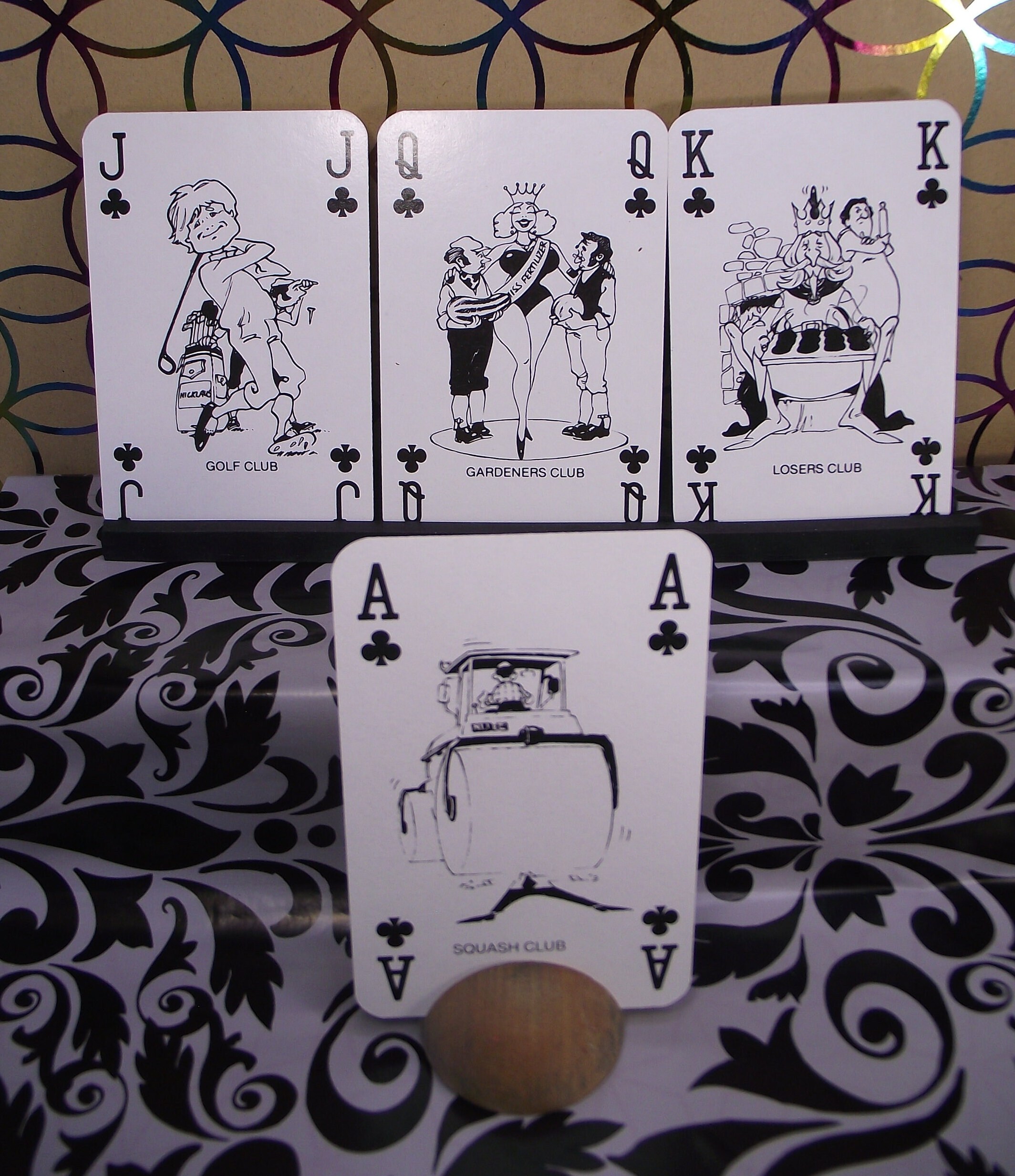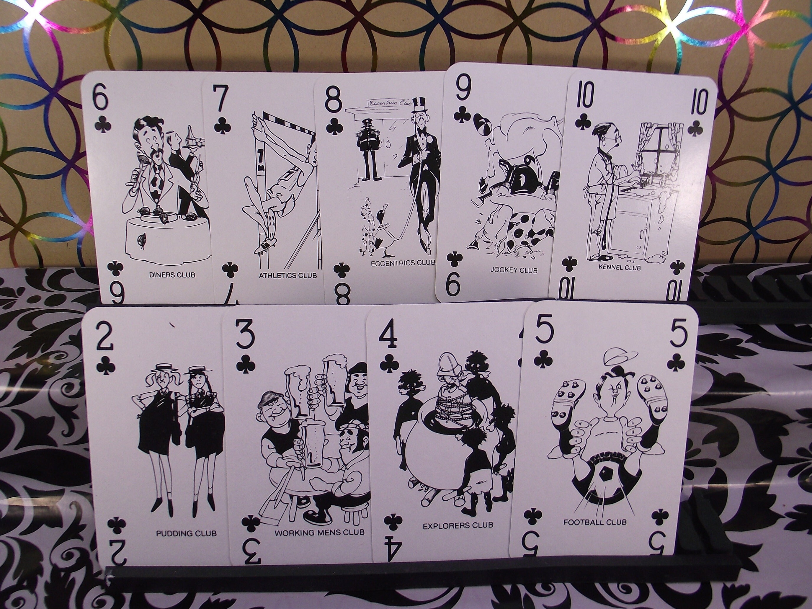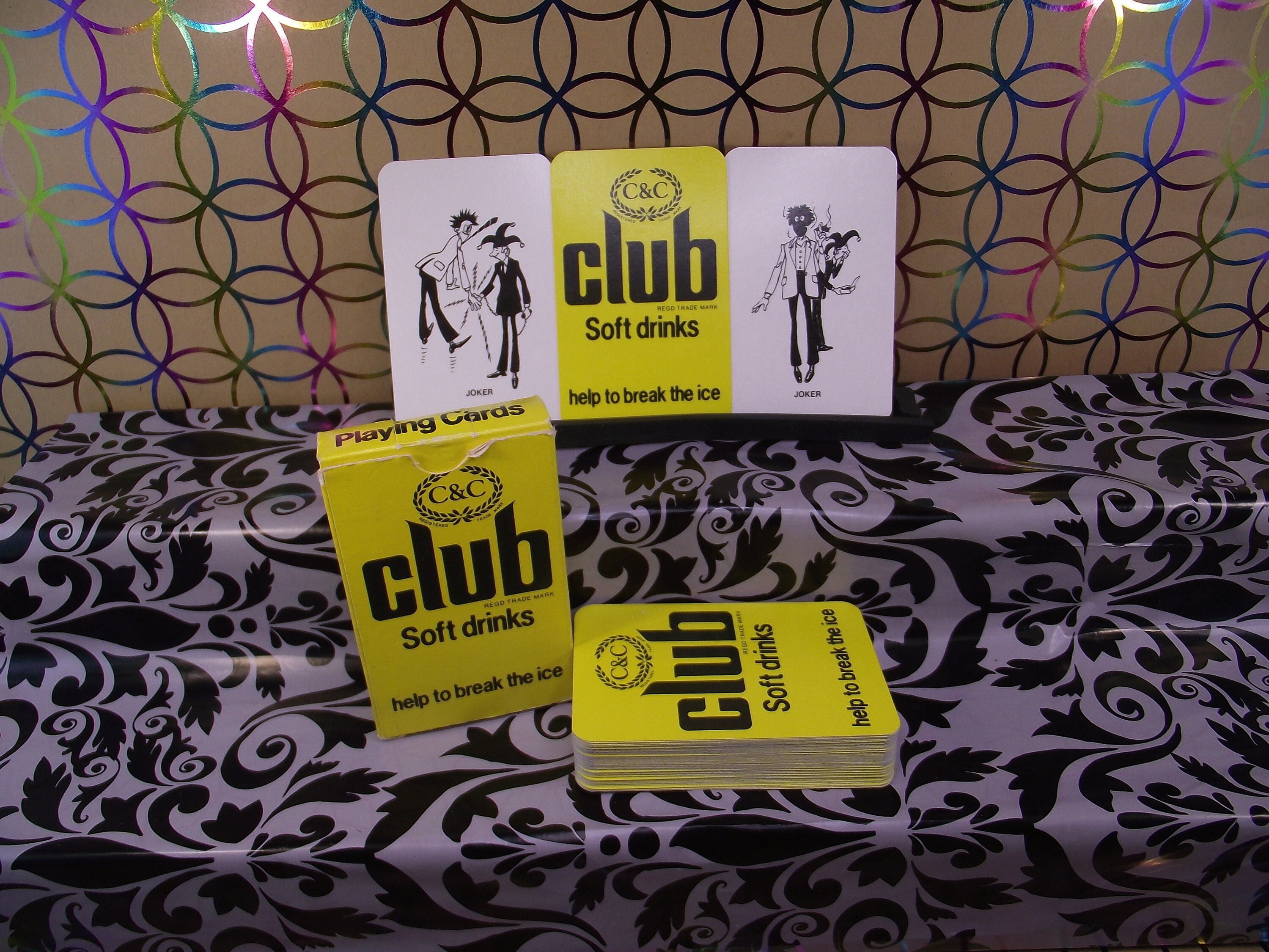 A special and rare deck of playing cards. It is an advertising deck for C&C and the cards show various leisure clubs with a funny note. The deck is complete. Made by carta mundi - year unknown