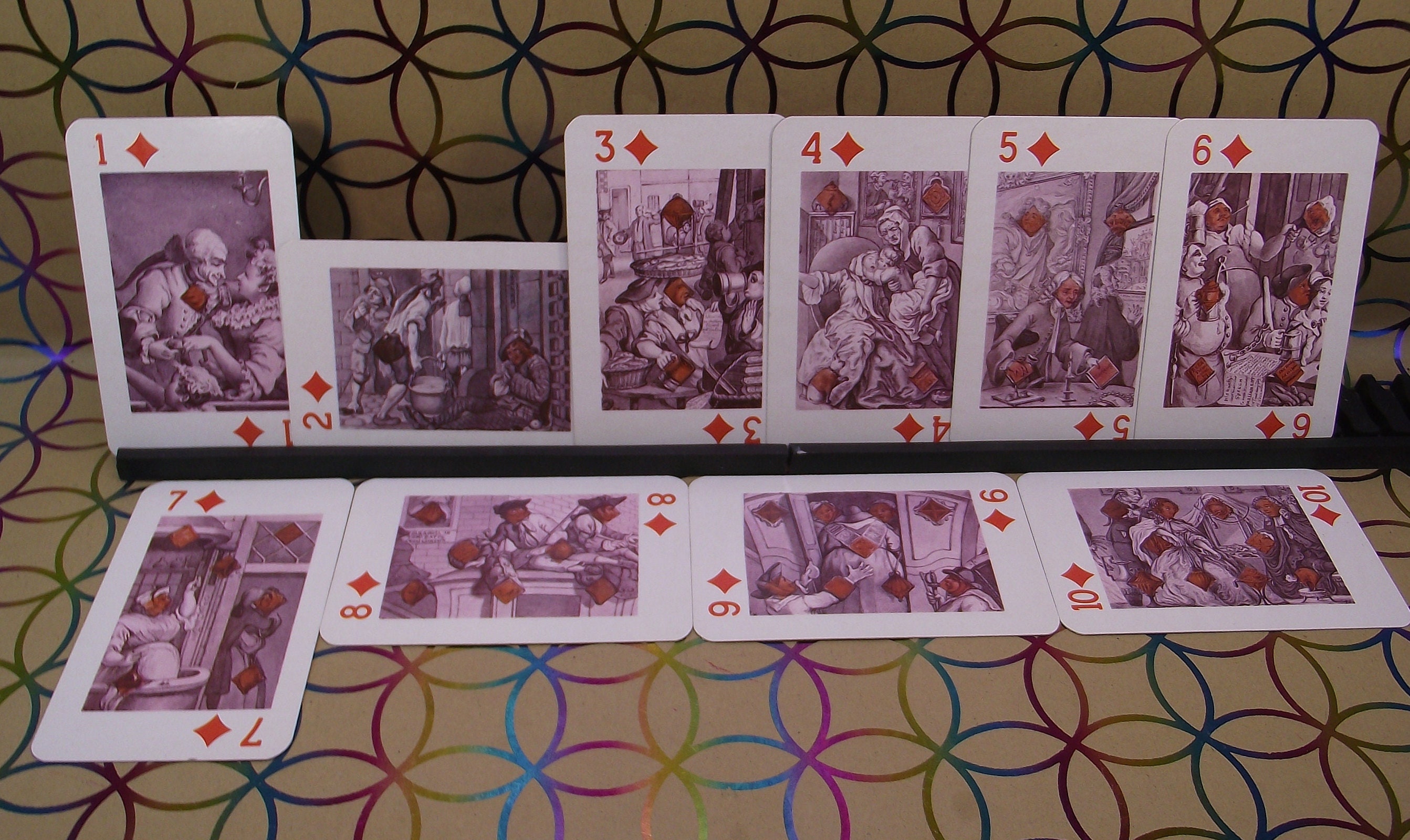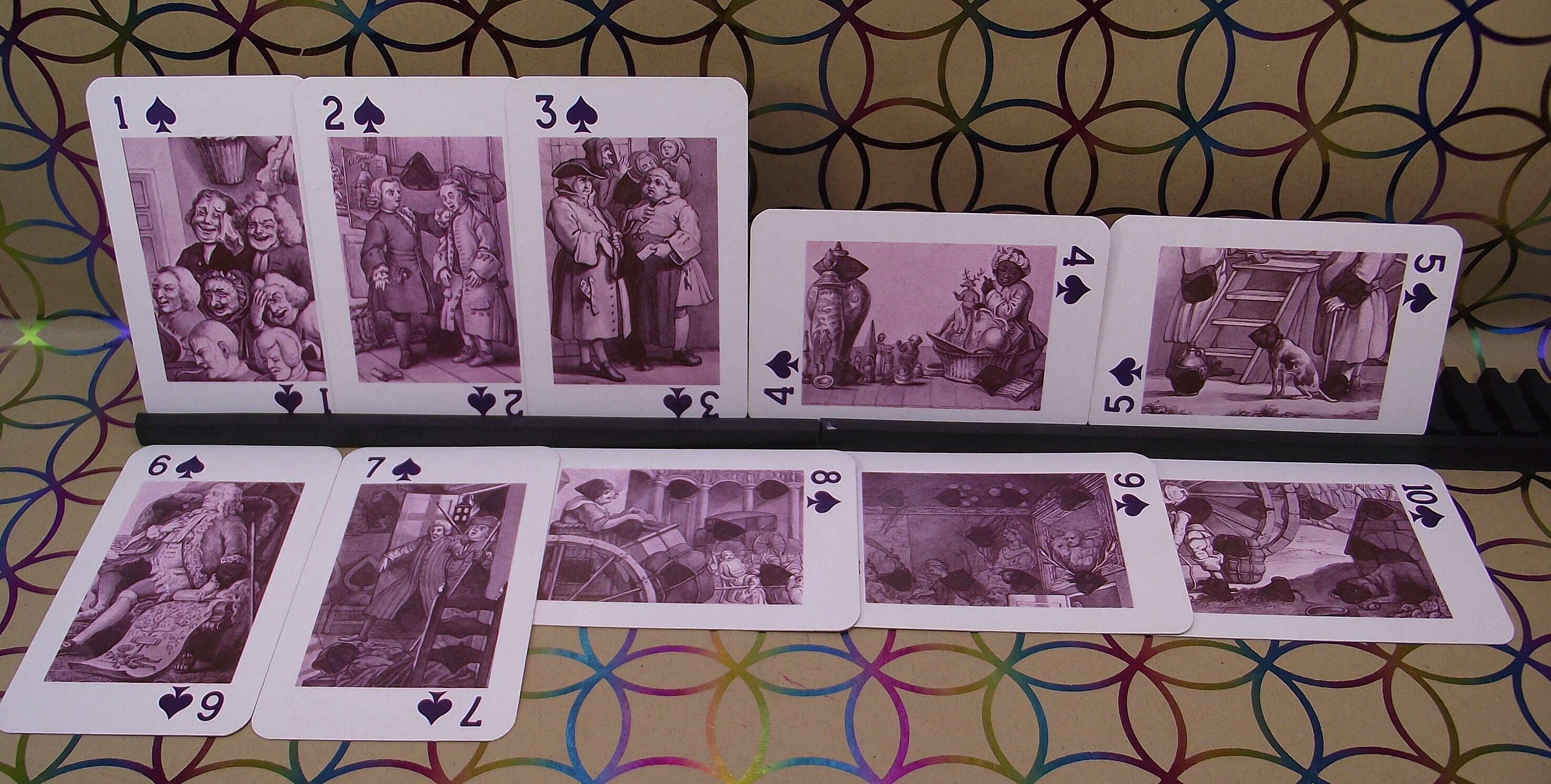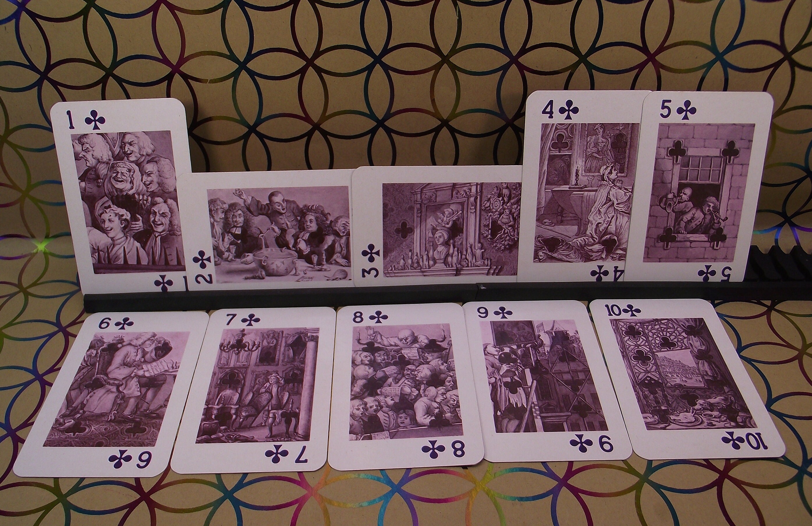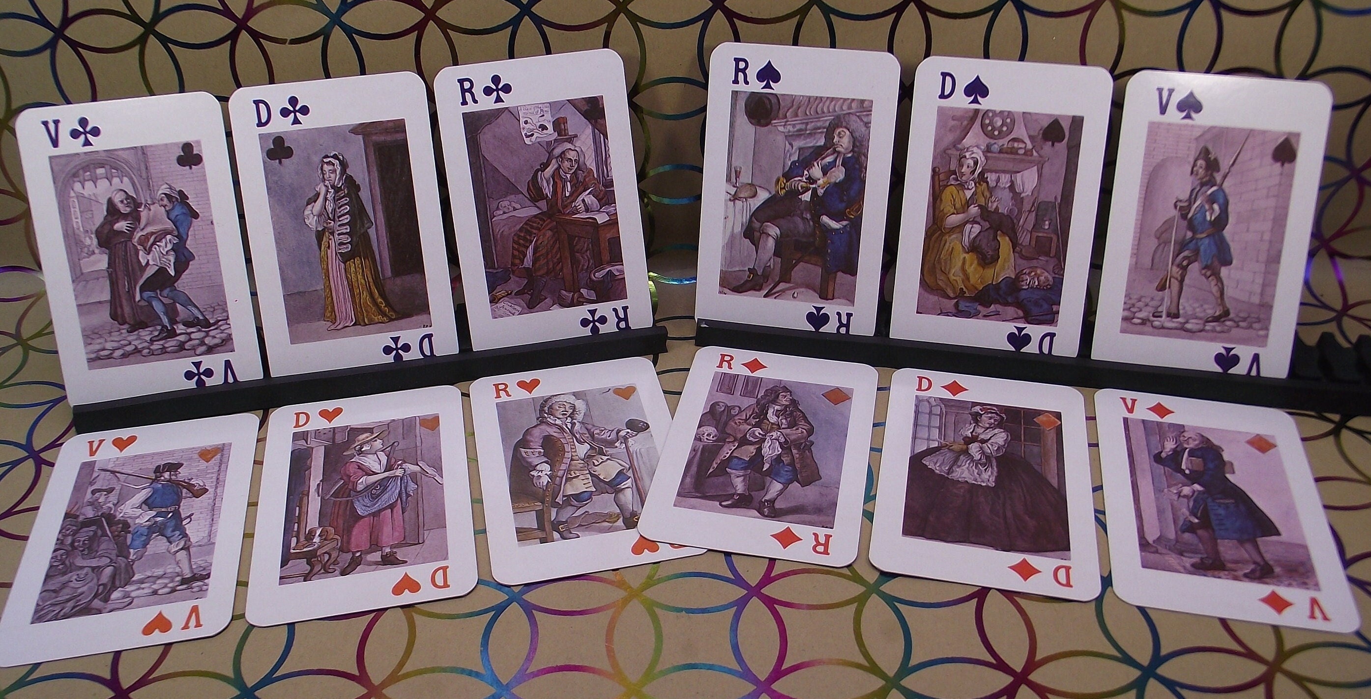 Unique and rare deck of playing cards made by a maker unknown to me. The famous English Grafeur William Hogaarts designed the cards. Of the type transformation cards. No box. The cards are delivered in a plastic box.