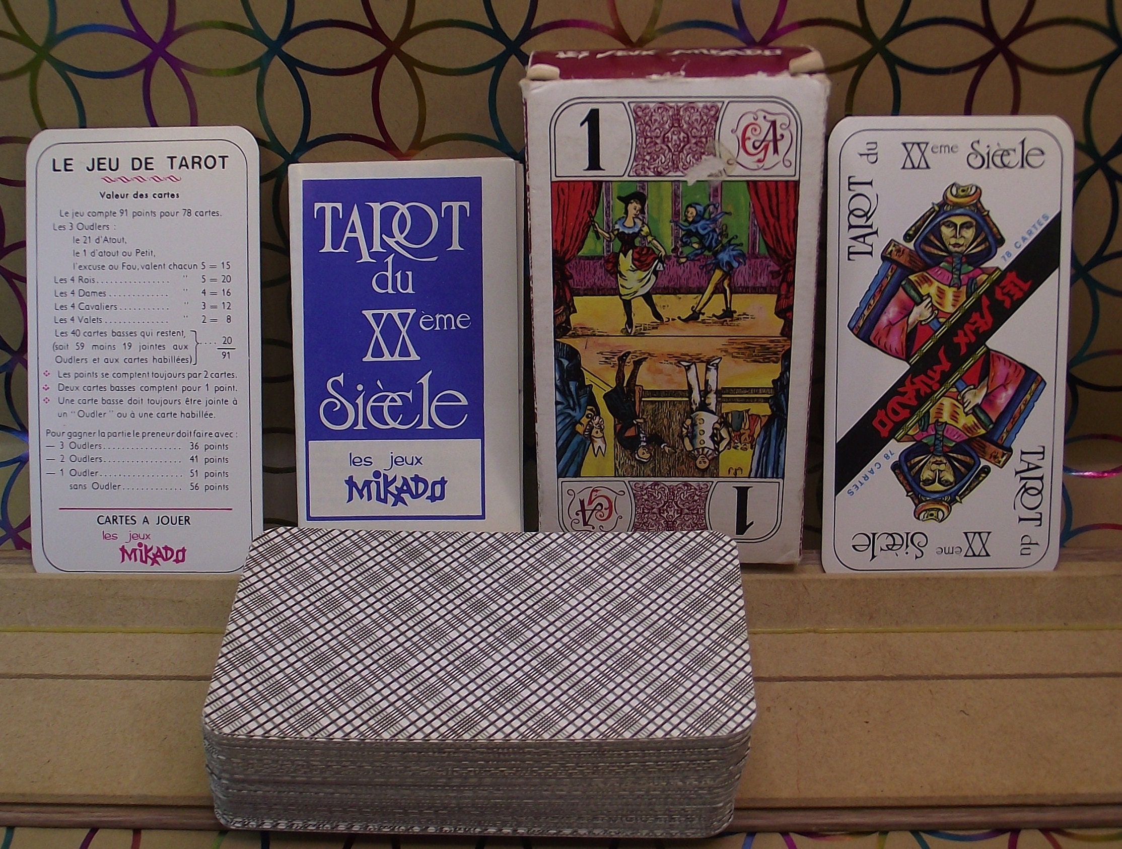 The game of tarot. TAROT OF THE XXEME SIECLE. A beautiful and rare tarot deck from France. It is a complete deck with rules. The language is French. The box is slightly damaged. Delivered in a plastic seal bag.