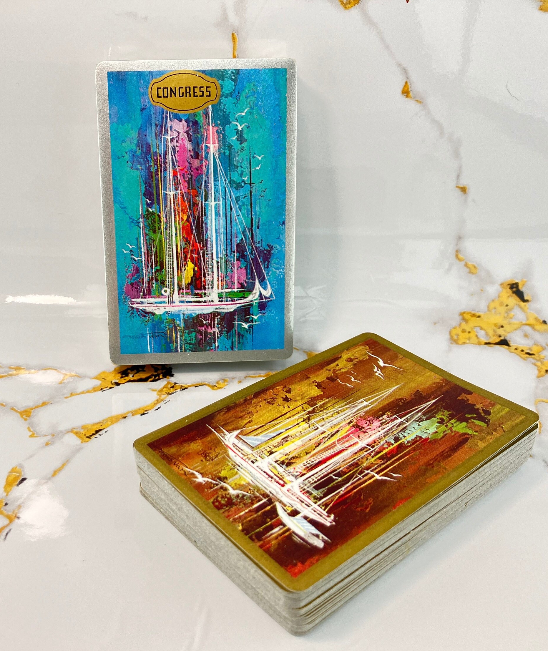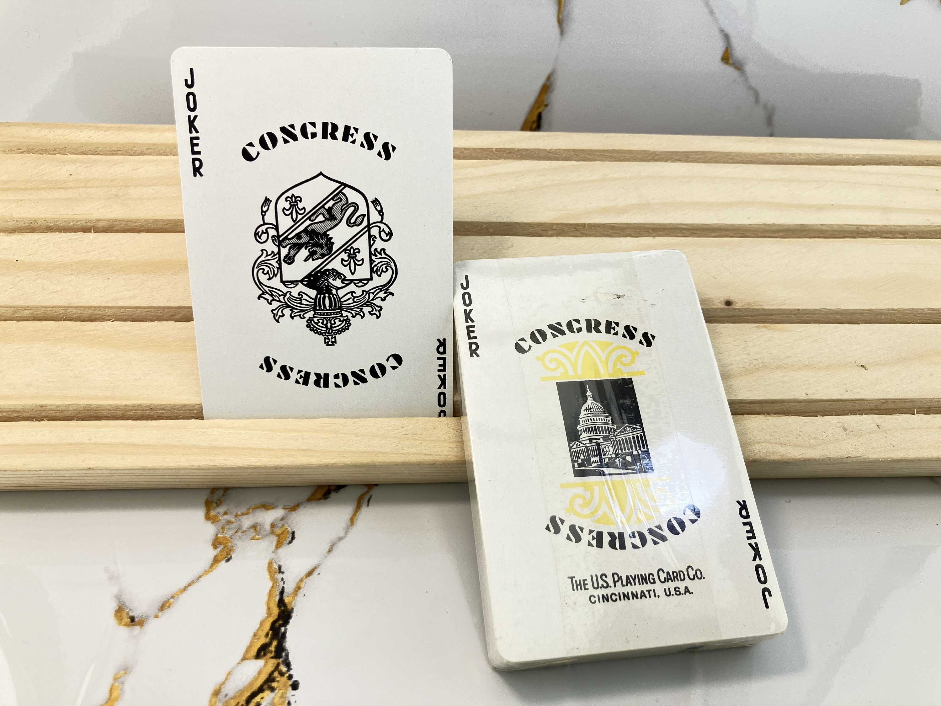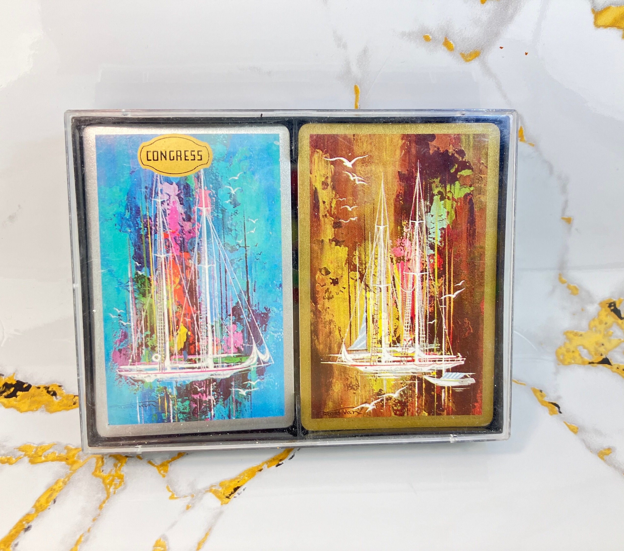 Beautiful and unplayed double deck set of playing cards. Made in the USA, vintage product.