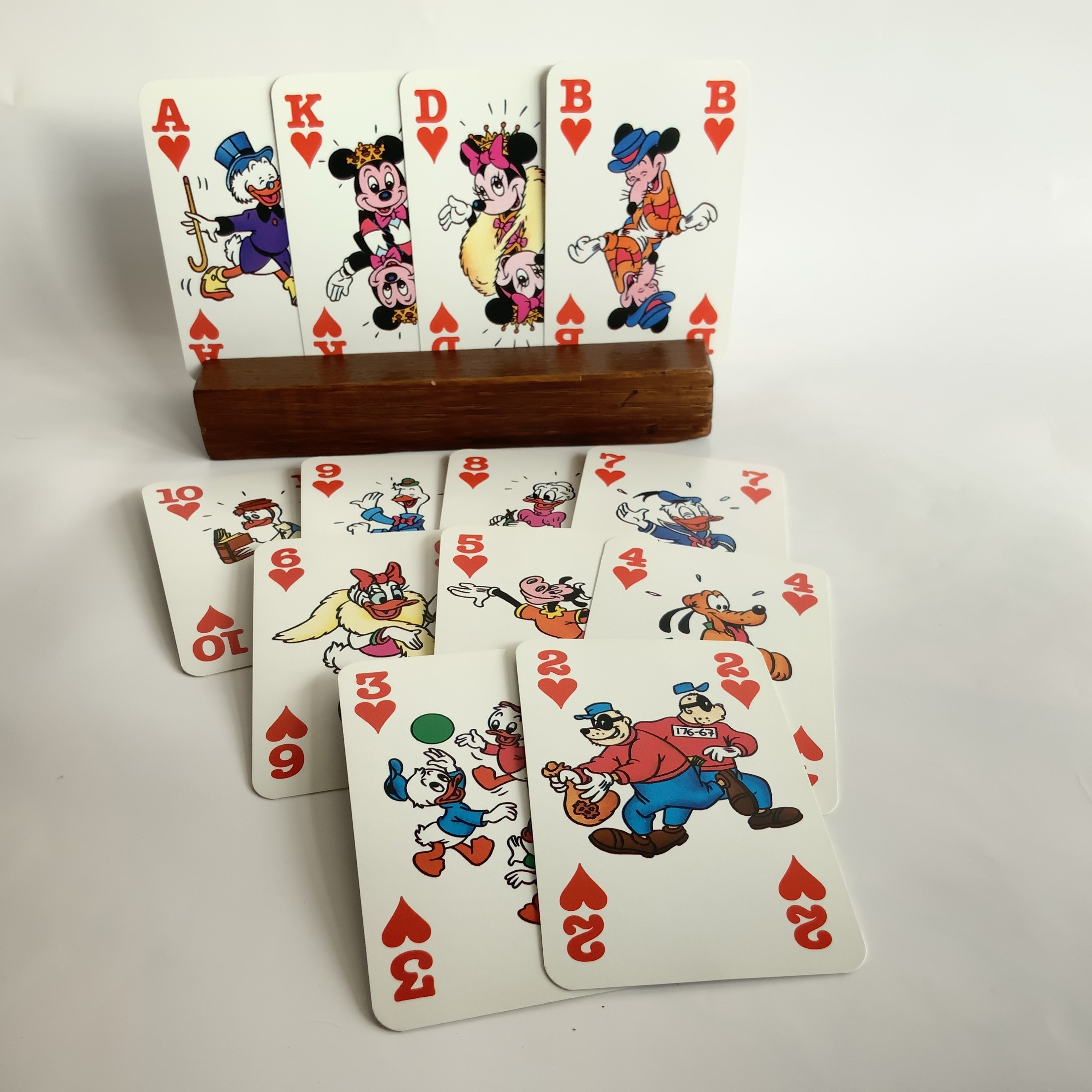 Fun and cheerful playing cards © The Walt Disney Company. PTZ. WITH MANY FAMOUS CARTOON CHARACTERS: Donald Duck and his nephews, Minnie and Mickey, and many more! The same characters are depicted on each of the four colors.