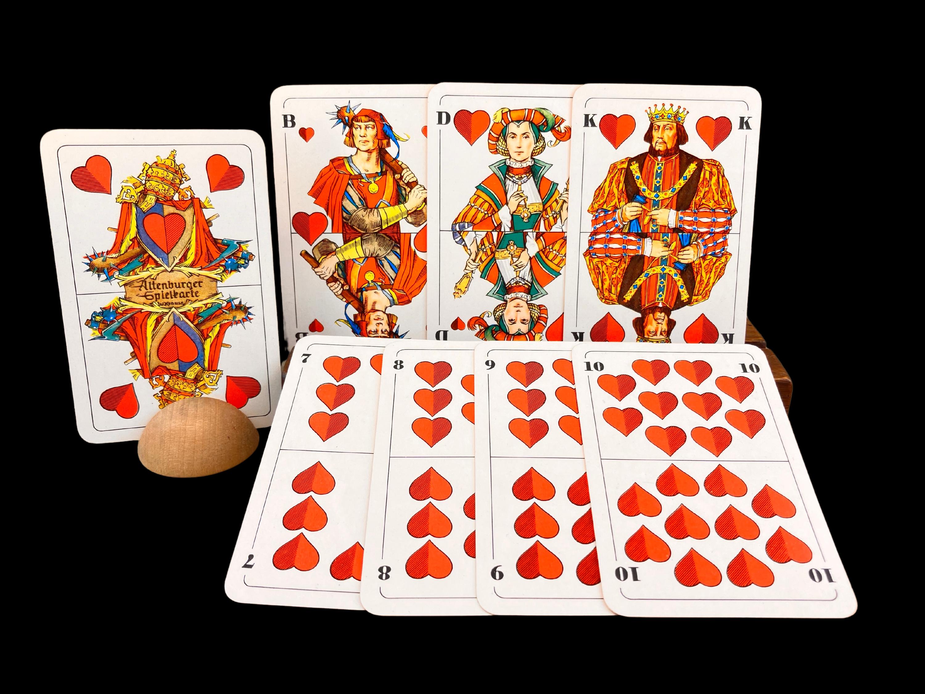 This deck is from 1969 and was then the new Altenburg image. This is the version with the women instead of the "waiters". The cards are perfect and are in a plastic box.