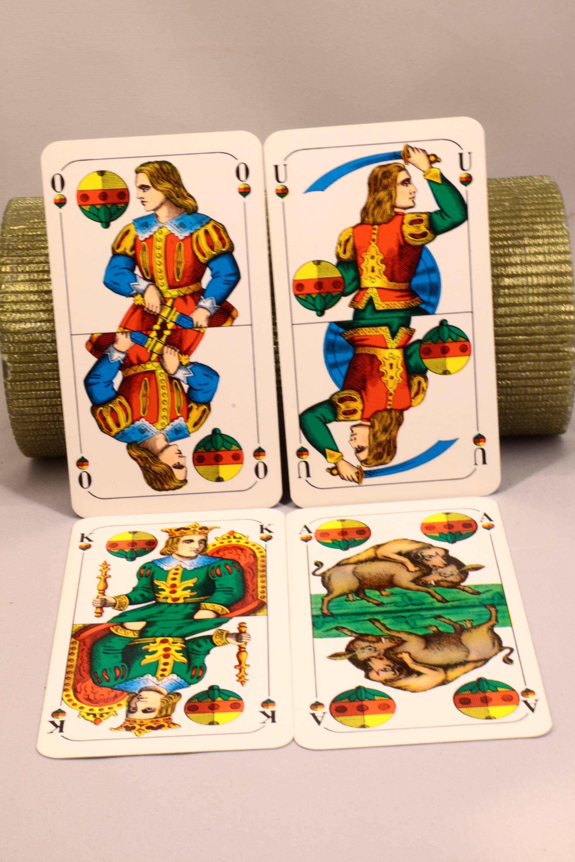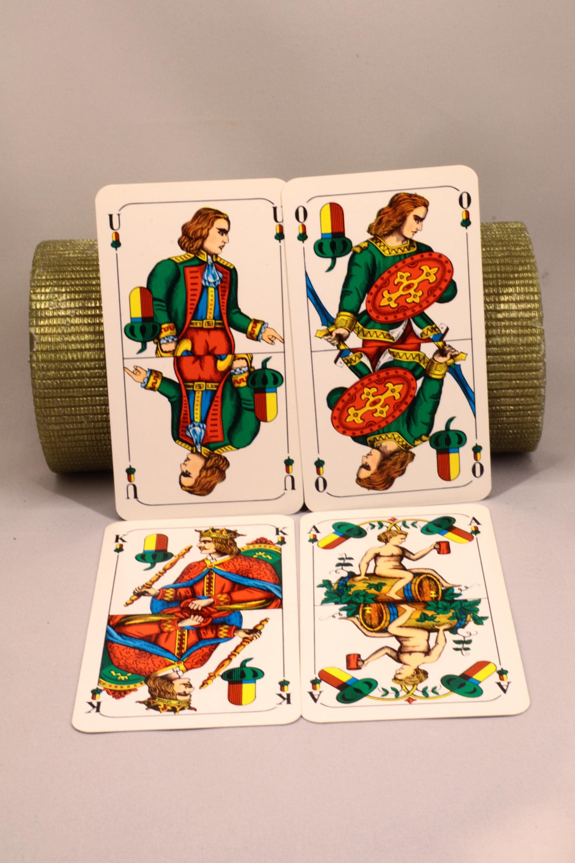 Schafkopf Tarok, bavarian double statue. The kings are depicted visibly on a throne which is typical for the statue.