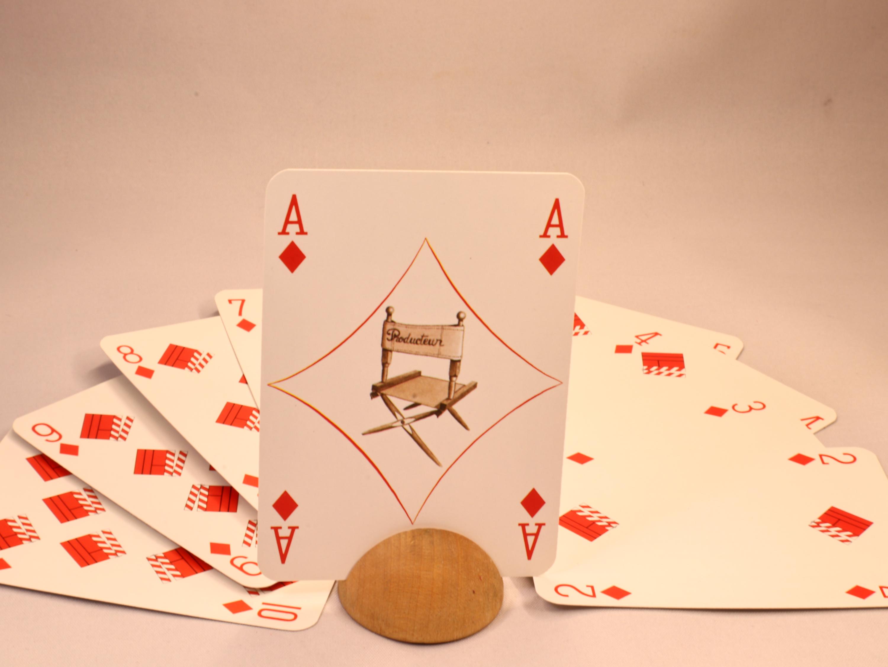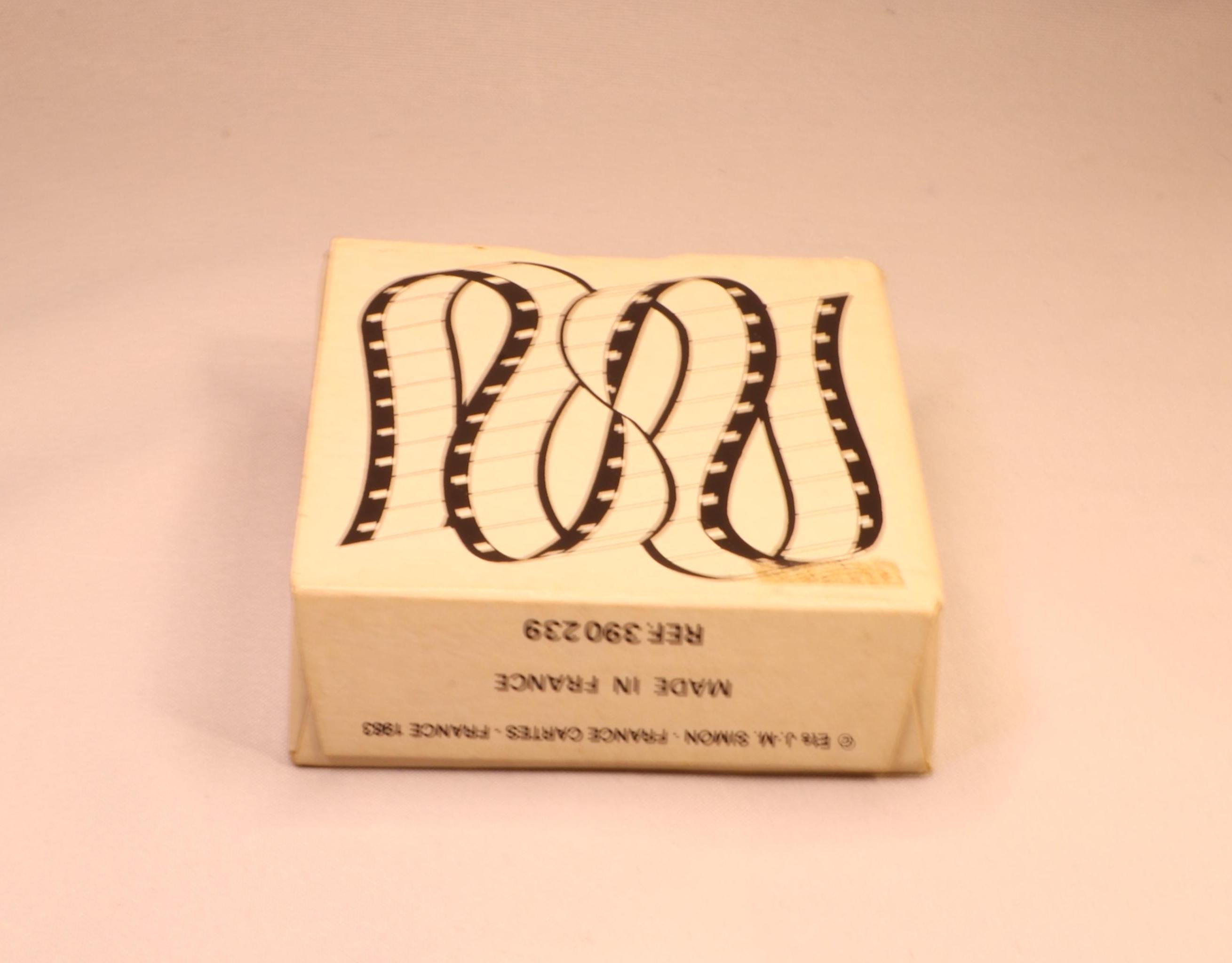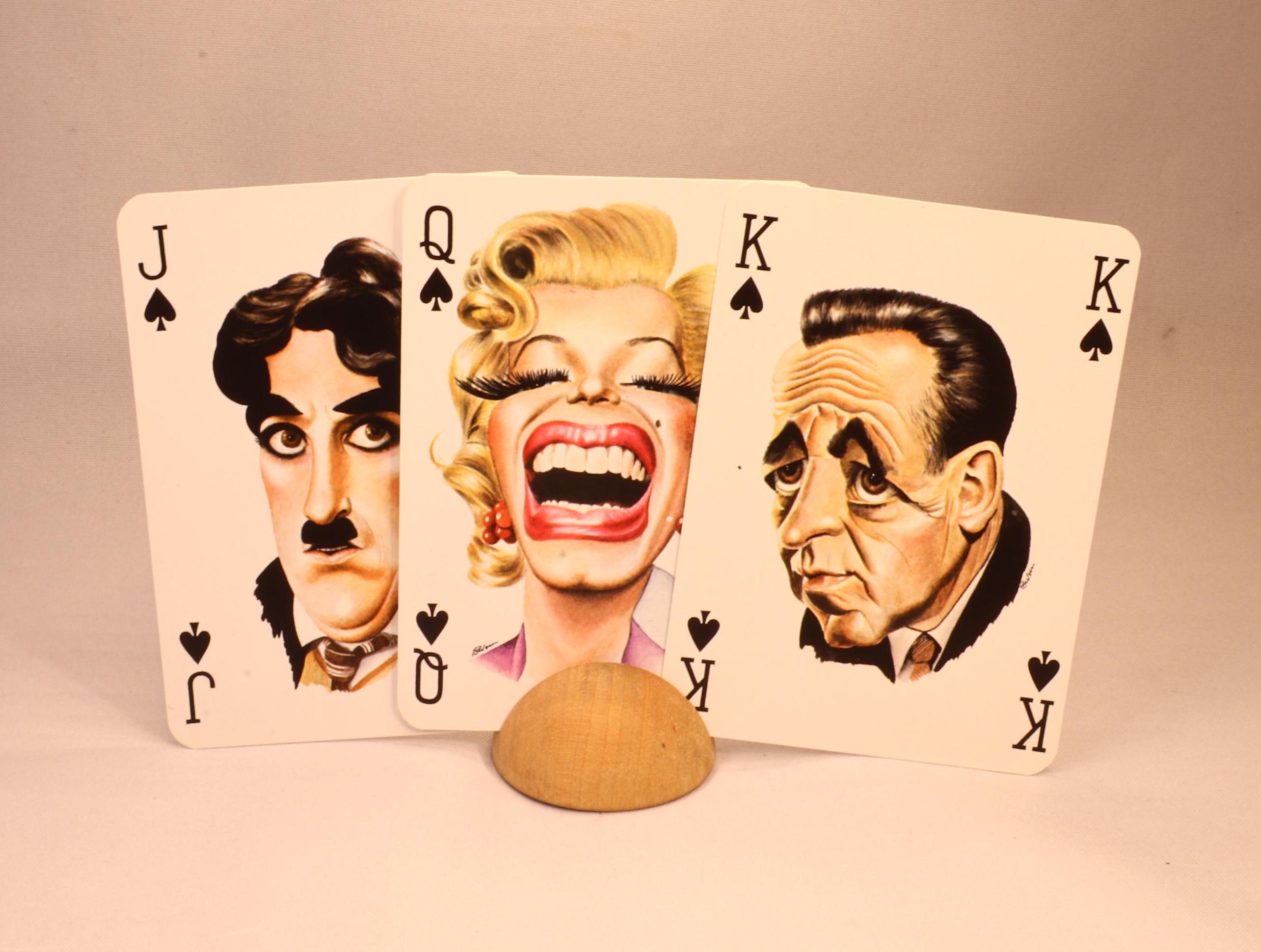 Copyright Ets JM Simon. France Carte. France. made on the presses of Grimaud France. We see various world stars and celebrities on the court cards illustrated in the style of CARTOONS. it is a beautiful and fun deck, beautiful colors, if you do not know who is on the cards, you can just take a look at the included extra card with the names of the people on the court cards.