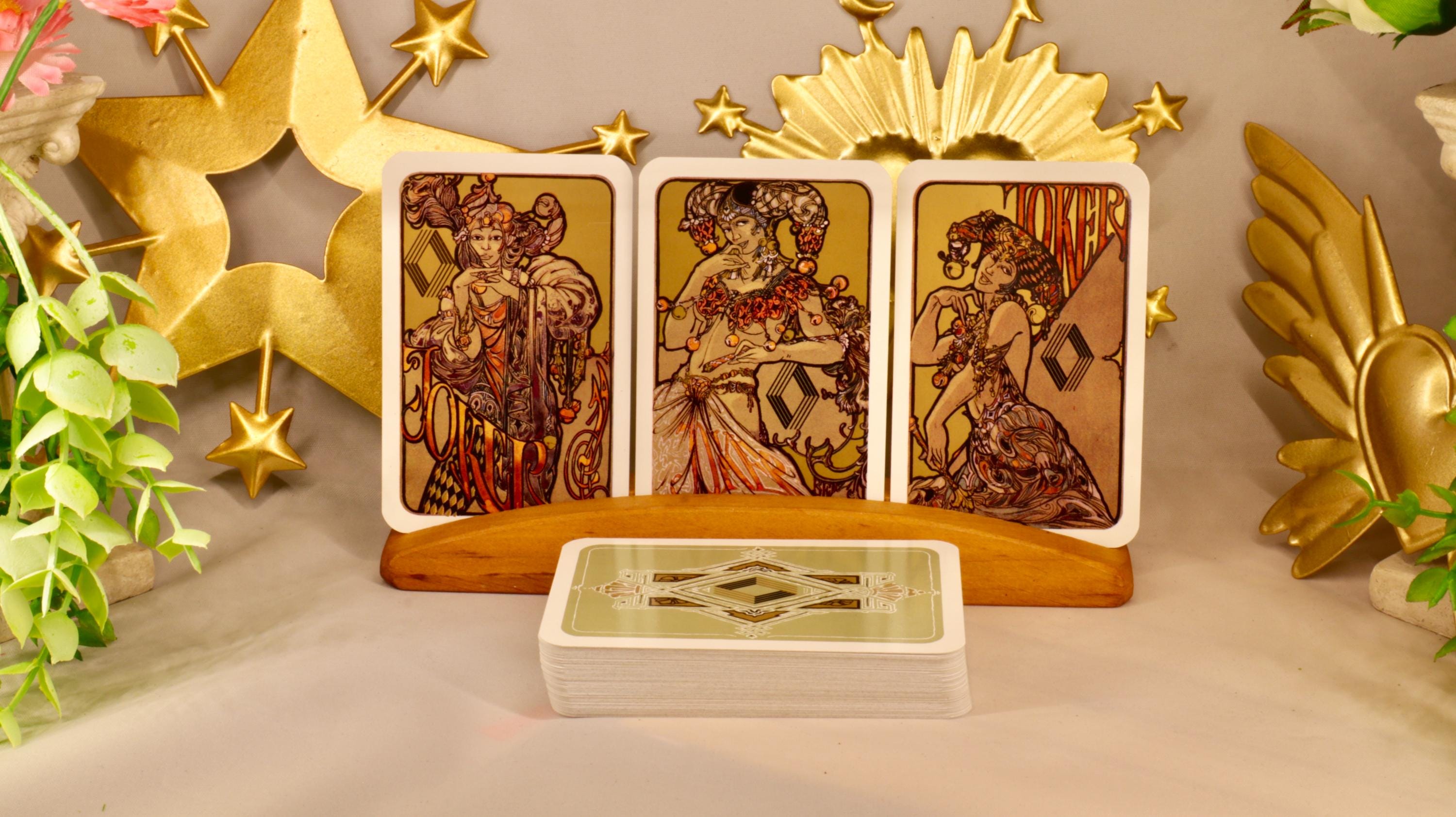 Beautiful and cool deck, that looks like a tarot deck. Complete deck with 3 Jokers. Unique and non standard.