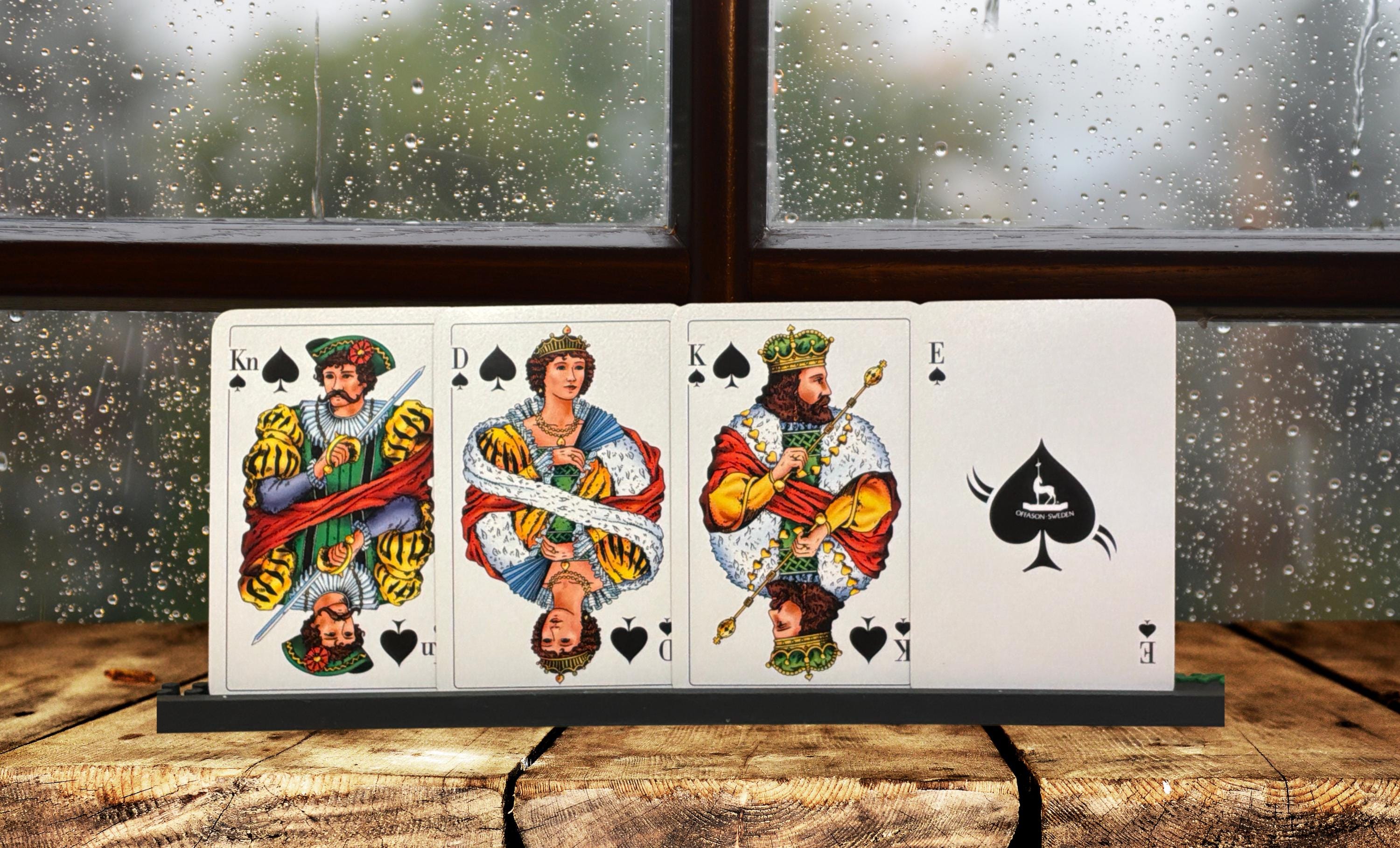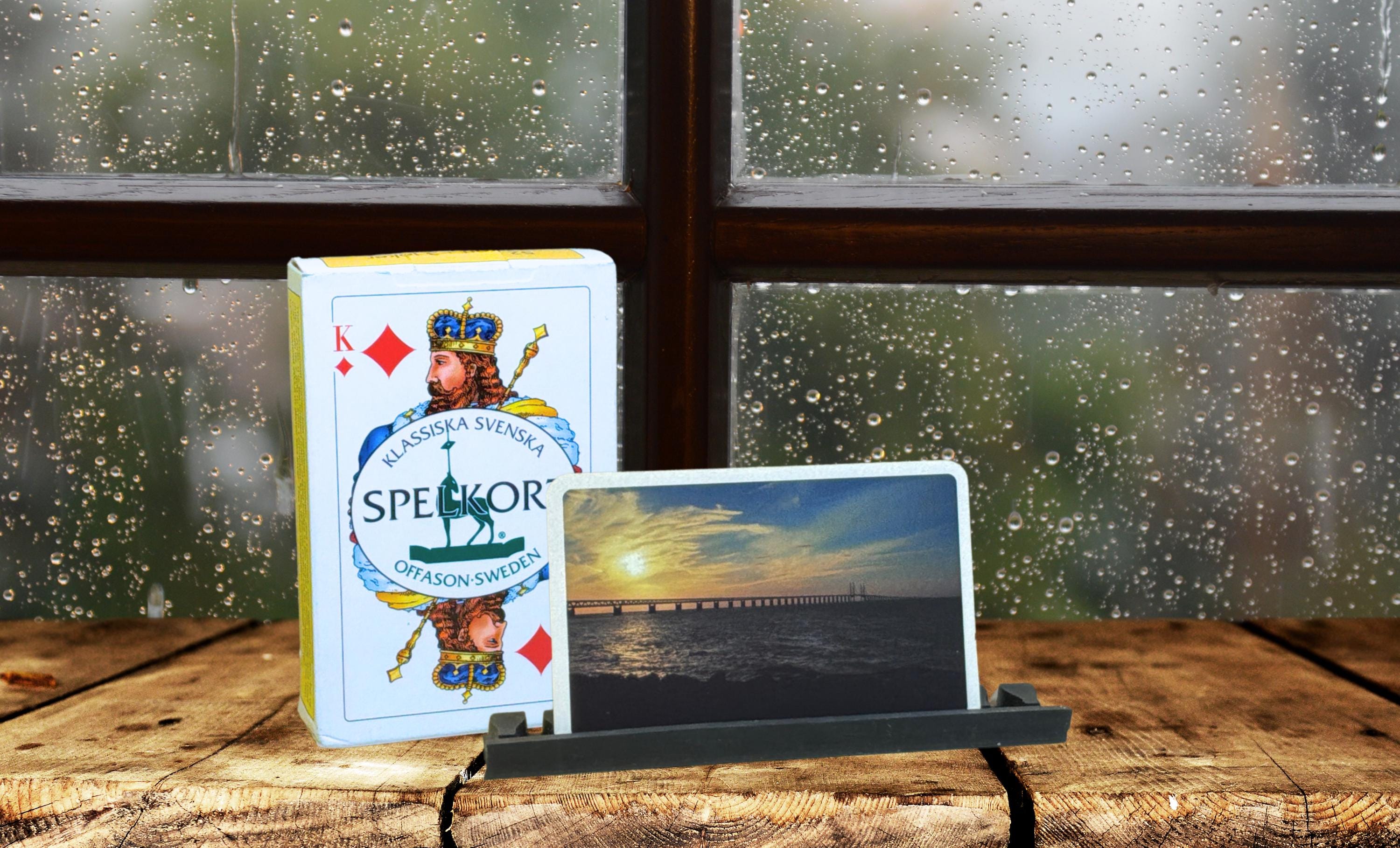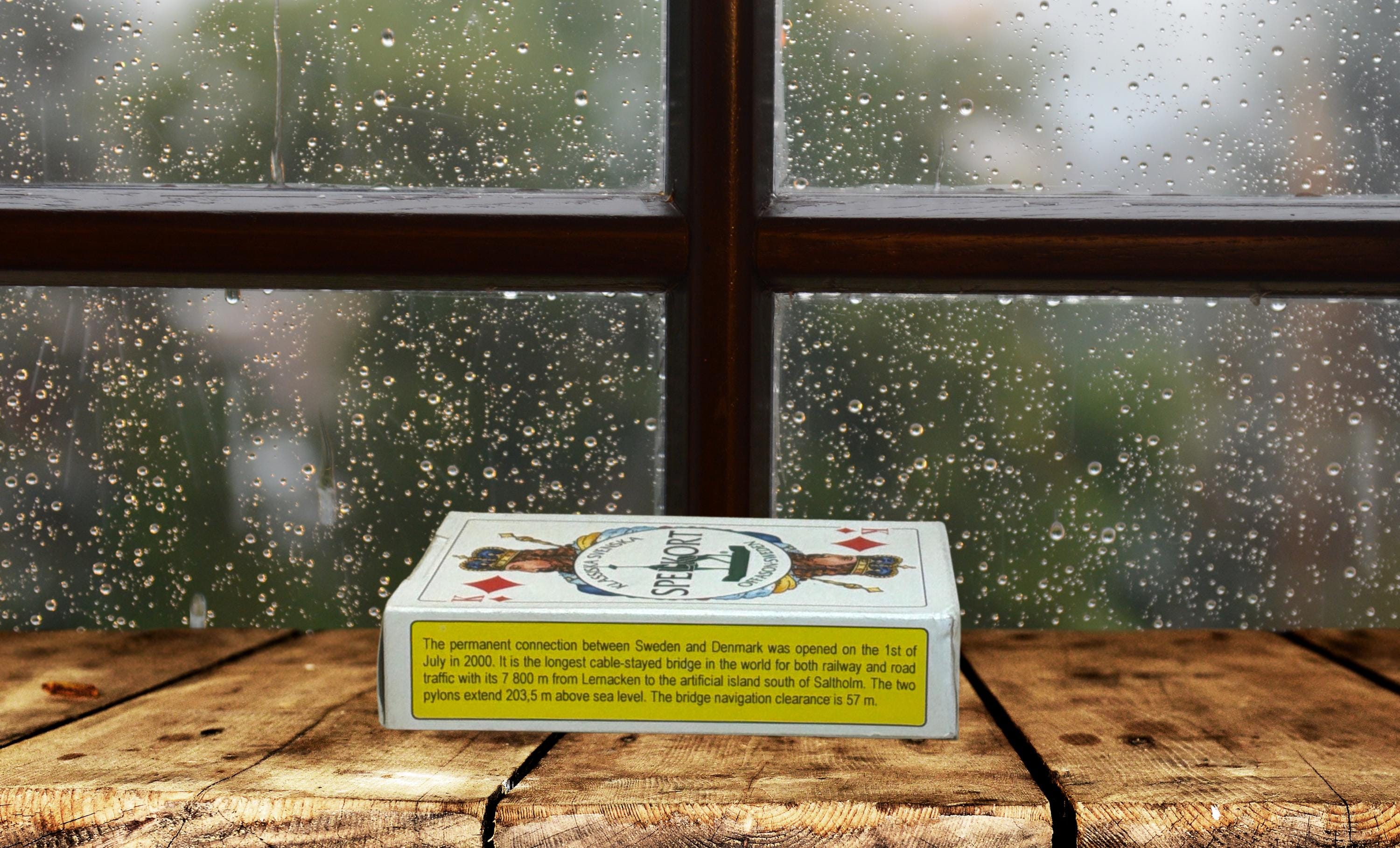 These playing cards are in good condition and come in their original box. The back of the cards features the bridge that connected Denmark and Sweden in the year 2000.